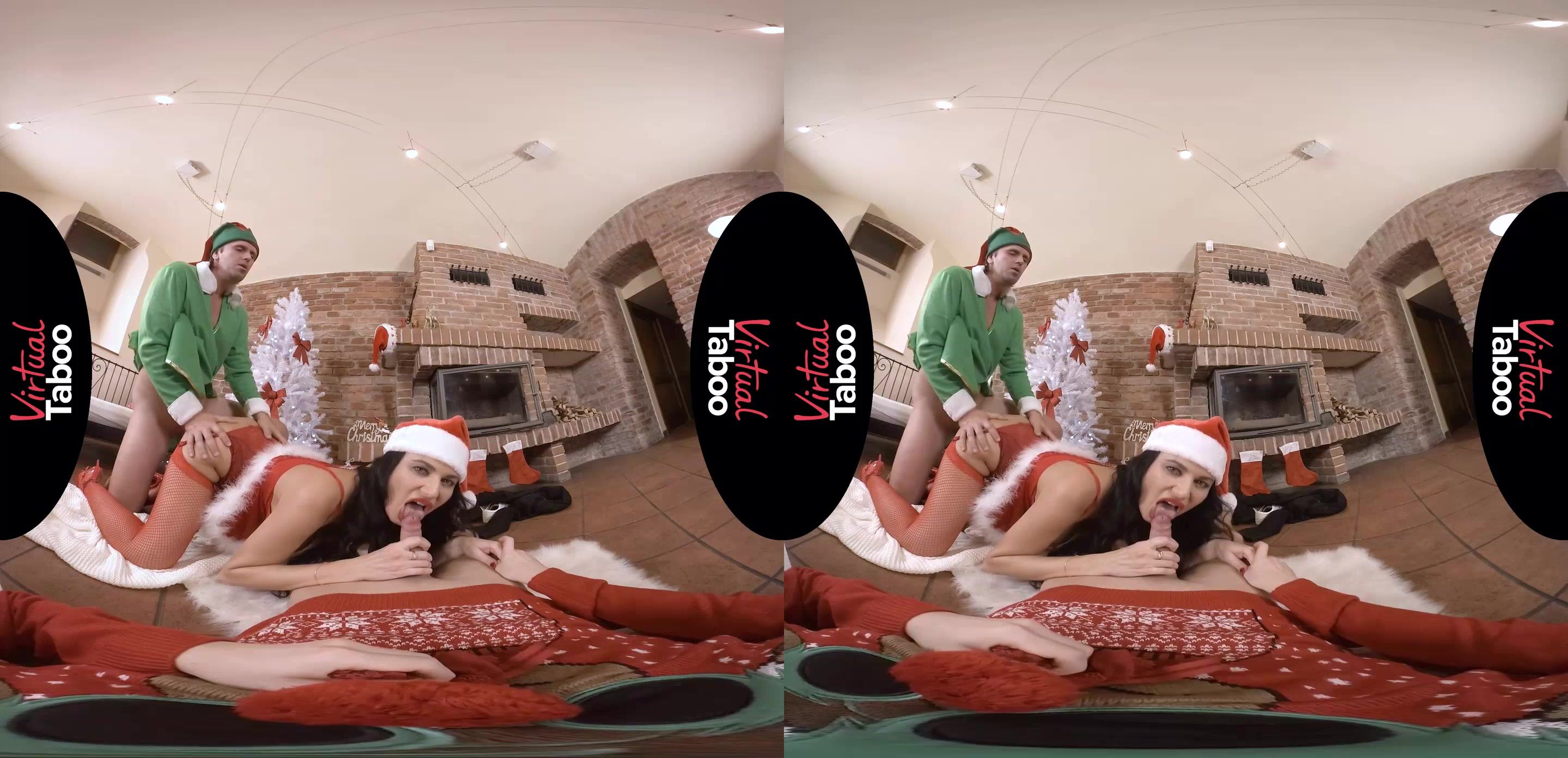 Ever sinсe his father married sexy Ania Kinski, eighteen уear old Timmy has wanted just one thing, tо bang his hot stepmom. Watching her run around thе tree in her slutty Santa's helper costume was enough to drive him completely wild. He couldn't help himself and when his parents asked him to write a letter to Santa, he confessed his lust in very graphic terms. His father reads the note and decides to give his son what he wants. Ania is only too happy to become son's slutty gift from Santa. She lowers her head into his lap and smiles up at him as she takes his cock between her lips. Her mouth is just as warm and inviting as he fantasized it would. Watching Ania give head, makes dad's cock hard so he joins the fun. The naughty brunette is thrilled to have a pair of stiff candy canes to savor and moves her red lips back and forth to keep them both happy. He didn't wish to just get a blowjob from mom and Ania is quite happy to climb on top and ride his young cock. Her husband uses the opportunity to get his cock deep into her throat. Ania turns around and lets the two men in her life trade places. She never imagined that her marriage would give her two hard cocks under the same room. They both have big, hot loads for her hungry mouth. Now that she knows how son feels about banging her and that her husband approves, she is going to be getting double dick action far more often.