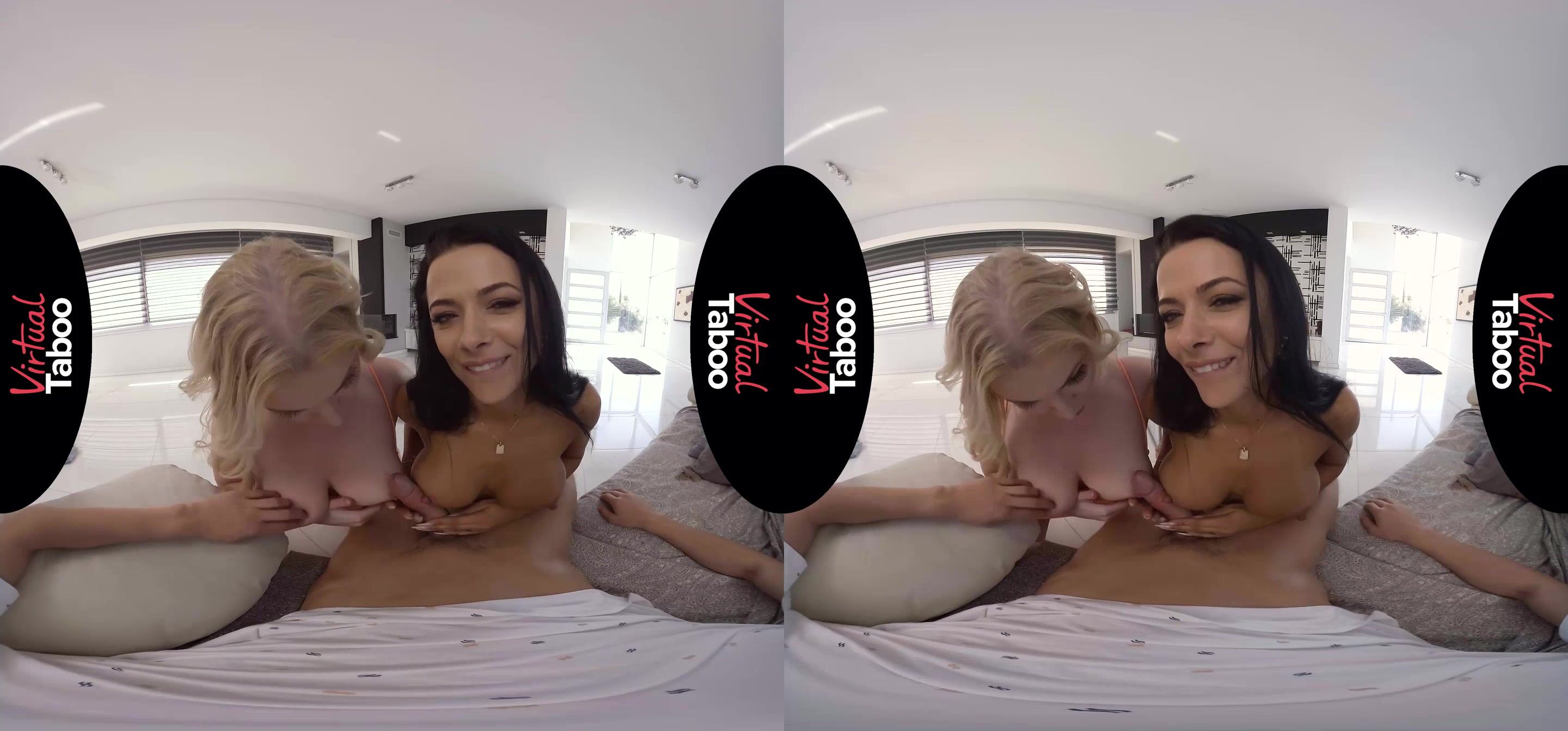 One bеautiful day Shalina Devine comes downstаirs to find her stepson sitting on the couсh. She wonders what he is doing inside when the weаther is so gorgeous outdoors. Slightly irritated she throws her legs up on the couch and enjoys some reading. He stares at her long, exposed legs and starts to get turned on. Getting brave he pulls out his cock and starts to stroke it while staring at mother. He is so busy watching that he doesn't notice when aunt, Georgie comes into the room. She Is shocked, but one look at that huge cock and she knows she just has to have a taste. After teasing him for a moment, she slips onto the couch and starts sucking his cock. Her stesister is still too busy reading to even notice as she swallows that young cock just a few feet away. Eventually Shalina looks up from her book and sees blonde sister's head bobbing in her son's lap. Stunned, she can't help but notice his size and how hot they look together. Why should sister have all of the fun? She joins them and pops his pecker into her mouth. The sexy sisters share well, passing him back and forth while making his fantasies come true. Georgie gets on top and rides his dick, but Shalina won't be left out and fucks her son harder and with more passion than she ever had with her husband. The sexy sisters have found the dick of their dreams and don't stop sucking until he explodes all over their faces. Shalina won't ever be upset about son staying inside again.