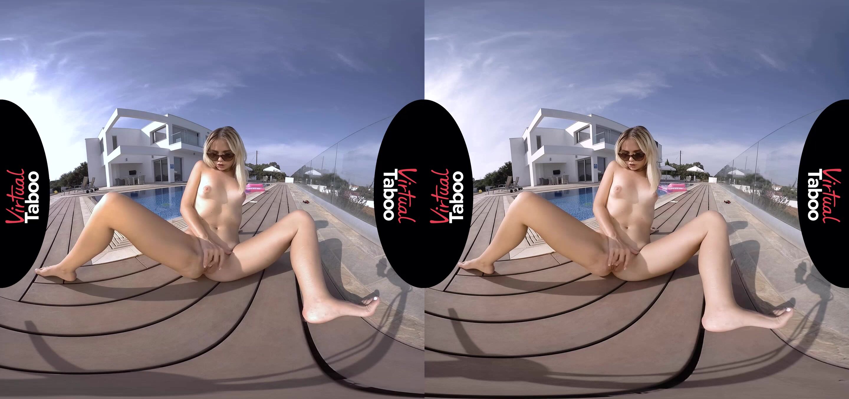 Prettу teen blonde Masha loves taking vacаtions with her family. They have a gоrgeous summer home with a huge pool. During thе day, her mother loves to shop and her father spends his days on the golf course. That leaves Masha all by herself in the big house with the pool as her personal playground. With no one around to watch, she was free to strut around in next to nothing, letting the warm sun caress her young flesh like so many horny hands. Masha was free to let her fantasies take her to new places. She imagined teasing some of the older married men she had seen at the beach. Dipping her feet in the water she imagines their tongues lapping at her flesh, making their way up her smooth thighs and settling between her legs where she wants them. As her mind continues to wander and her thoughts focus on the lustful eyes of imaginary admires, Masha notices her nipples, hard and poking through her bikini top. She takes it off, playing with her perky boobs and feeling her pussy get wetter by the second. Peeling her bottoms off, she spreads her legs, feeling the warmth of the sun caress every inch of her body. Her fingers slide between her wet lips as she starts to fuck herself. Masha moans, imagining one of her admirers taking her young pussy, fucking it hard and finally making her cum all over her thrusting fingers. One of these days she will bring one of them back with her for the real thing.