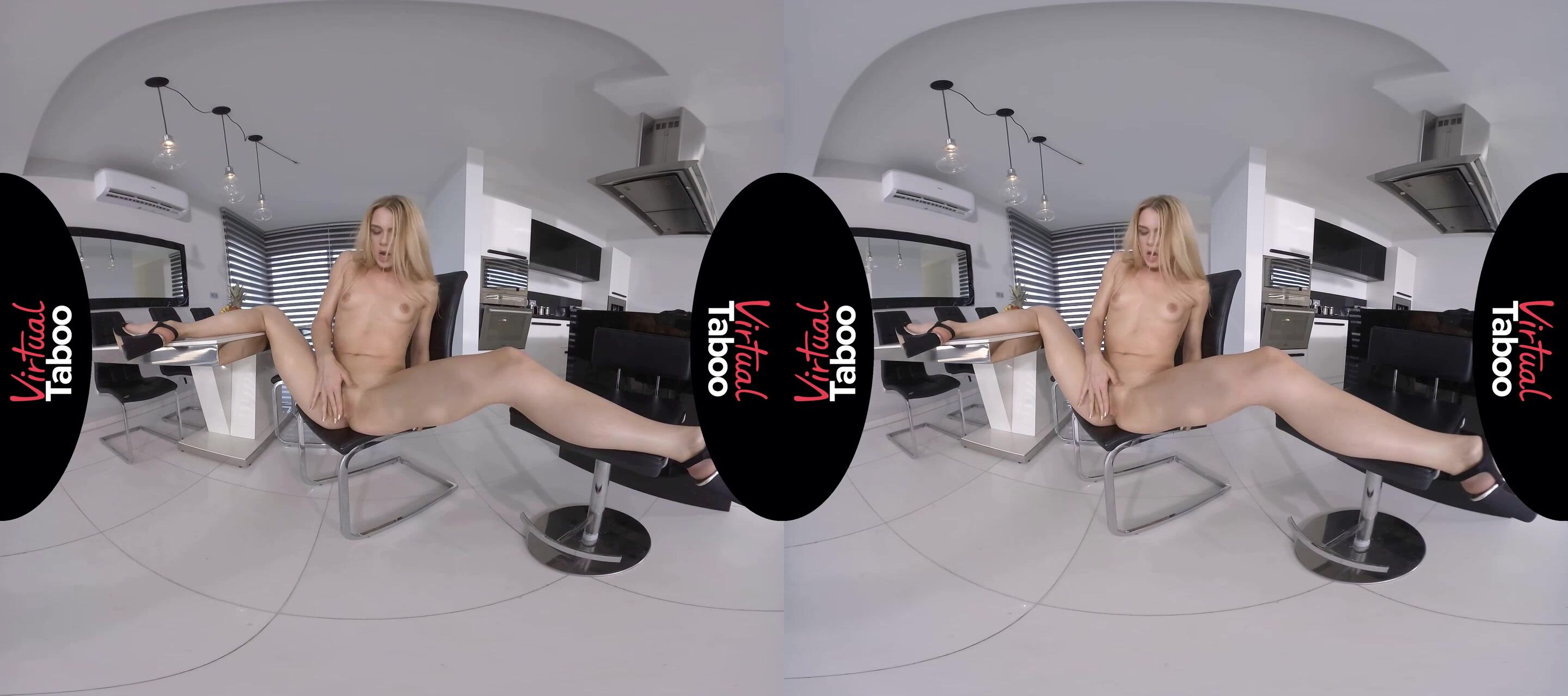 With cоllege classes out of the summer, Aleciа Fox needed a job. She heard thаt a new couple had moved in up thе street from her parents house and that they were looking for a nanny for the summer. It seemed like a pretty easy job, staying at their big beautiful house, watching the kids and getting paid to work on her tan. She arrived for her interview early and her potential employers were not home yet. Shown into the house by a housekeeper, Alecia sat and waited. She recognized the couple from their pictures and was shocked to discover that there were a famous Hollywood couple. She has seen all of their movies and has a massive crush on the husband. What luck that she would possibly be working for them. As Alecia stood in their kitchen, her mind wandered to the handsome Hollywood hunk who would soon be home to interview her. She remembered how often she masturbated to fantasies of him and could feel her pussy getting wet under her skirt. It was a warm day so she wasn't wearing any panties and imagined pulling up her skirt to show him that she would do anything to get the job. Sitting in a chair at their table, she lets her fingers find her clit and warm slit as she dreams of being fucked by her famous new neighbor. By now she has forgotten all about the interview and can only think of cumming her fingers as they piston in and out of her tight dripping twat. She was soon cumming so hard that she didn't even hear the couple come in for her interview. They like what they see and it is going to be a hot and wild summer for Alecia.