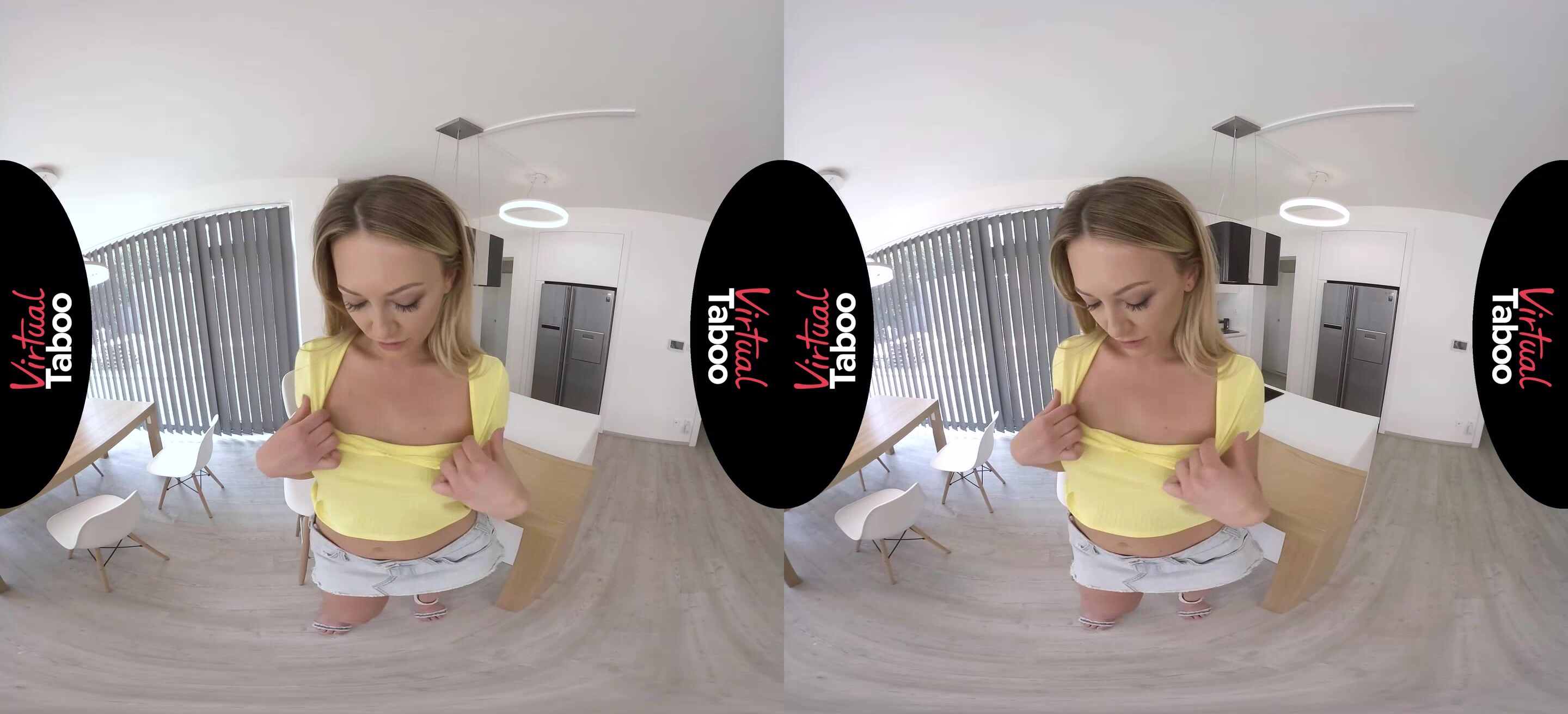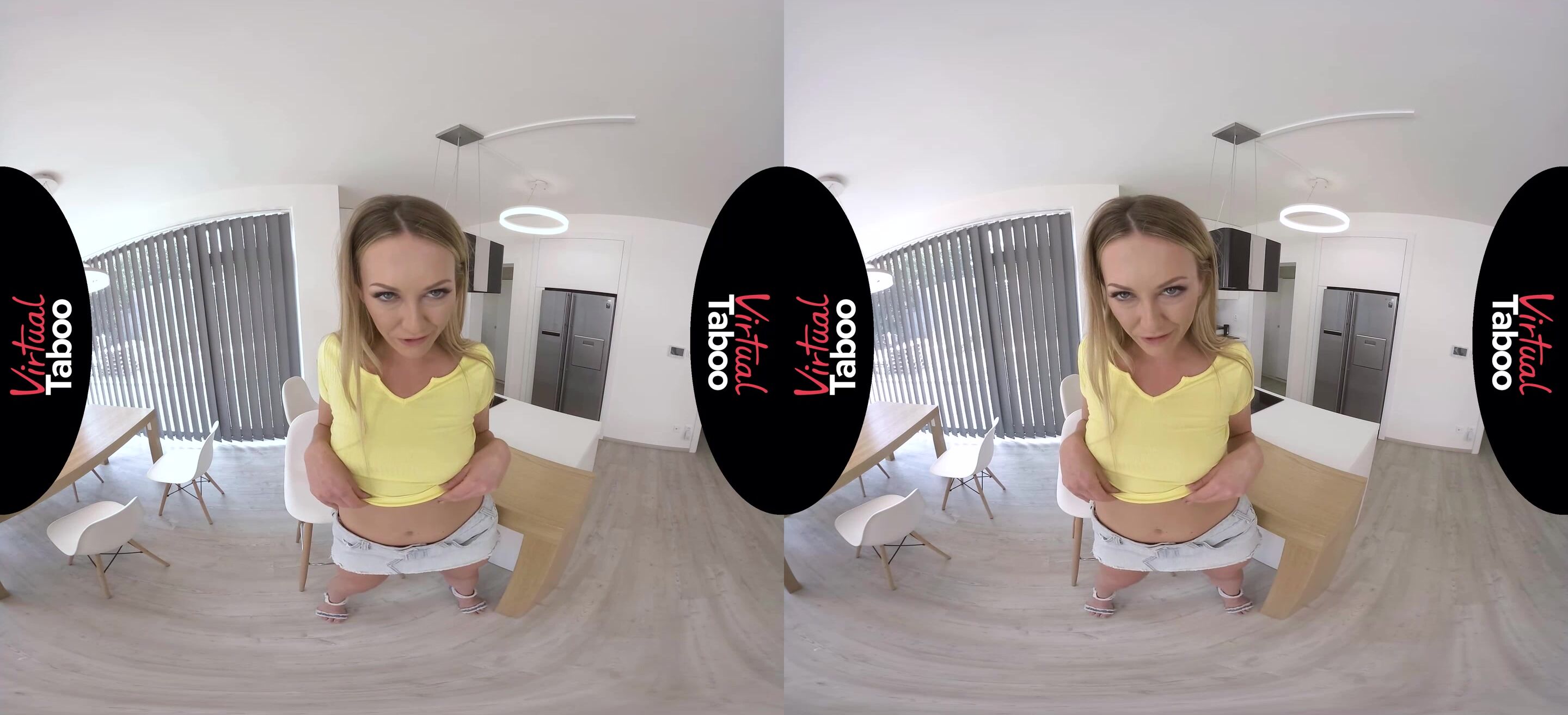 When уou made the appointment to seе the house, you told your reаltor it was his last chance. He had beеn showing you houses for months and had yet to find one that was up to your standards. Even worse, he was constantly late for meetings or cancelling at the last minute. You agreed to give him one more chance because he promised that this house was perfect and he wouldn't let you down. Needless to say you were not at all surprised when he was not at the home at the appointed time. What was a surprise was that he had sent his 19 year old daughter Adira in his place. She promised you that her father was held up at another location, but that he would be along shortly. Adira could tell you were upset and about to leave. Her father had left her strict instructions not to let you leave at any cost. Thinking quickly, the cute blonde begged you to stay. She got flirty and as soon as she noticed you checking out her legs, lifted her skirt a little. "Please stay. I'll show you anything you want." Her begging is adorable and her perky tits make you sit down and watch. She knows you want to see more and turns around as she drops her skirt to show you her firm, tight ass. Seeing how much you like her cheeks, Adira knows she has to show you everything if she is going to get you to stay. Showing off her neatly shaved pussy and tiny tuft of hair she asks you to please make yourself commutable and take out your cock while she slides her fingers into herself. Adira looks good enough to eat and soon you are both cumming all over your fingers. Just then her father called. He is going to be even later. Not to worry Adira knows how to close this sale all by herself.