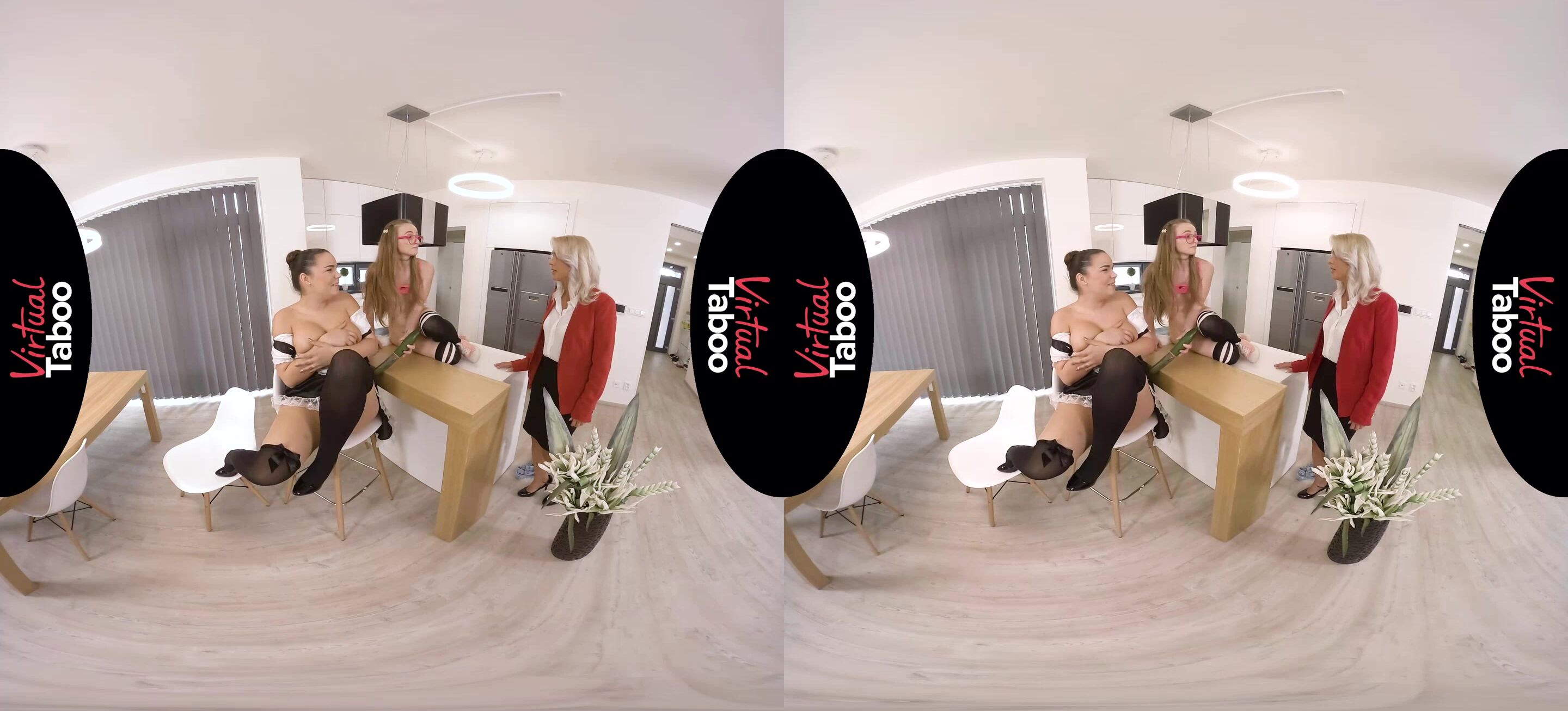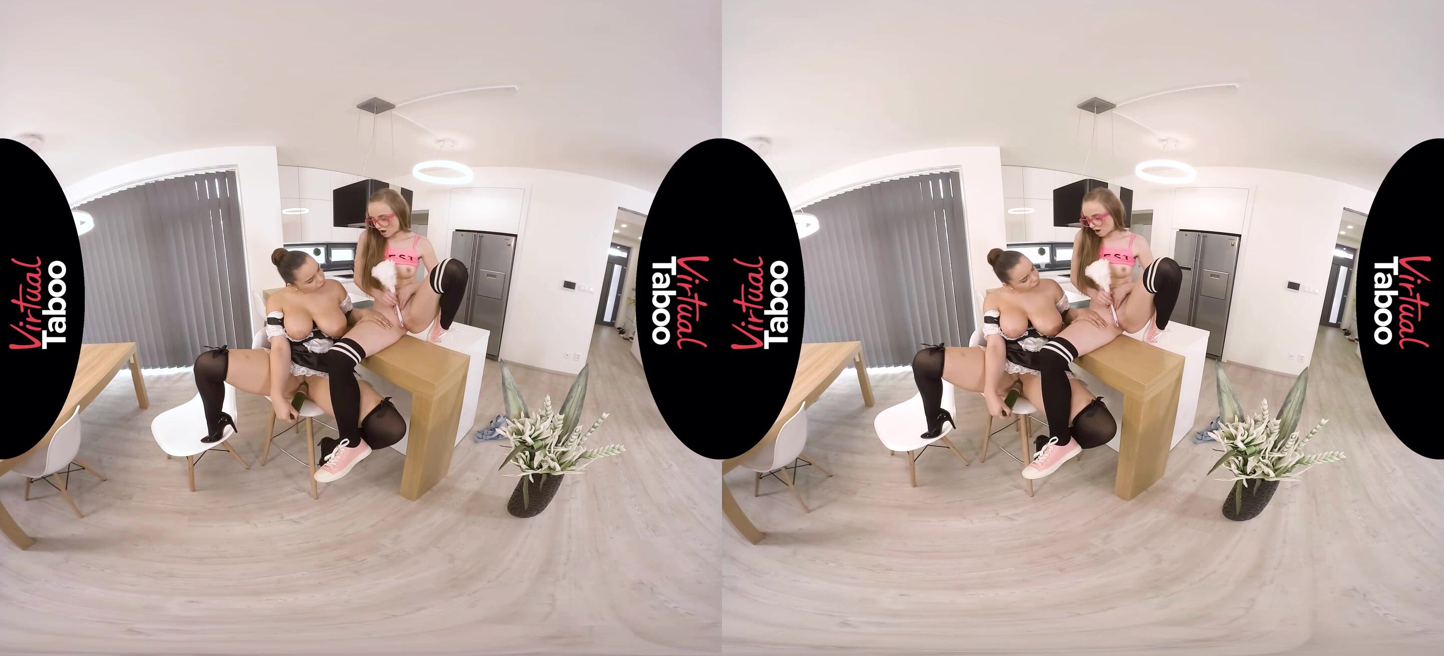 Sofiа Lee knows that she works for a very freаky family, but she had no idea just how wild thеy were until the day she discoverеd the special vegetable. She was cleaning the kitchen like she did every day when she came across a giant cucumber covered in a condom. Shocked, but intrigued she couldn't help but be curious. Sofia had heard of people using vegetables as sex toys and always wondered what one would feel like inside of her. She gets comfortable and starts to slide several inches of it into her pussy, enjoying the way it fills her up. Right in the middle of her self pleasure, the family's 19 year old daughter Lady Bug comes in and watches Sofia for a bit. She makes herself known the lusty maid and offers to help. As she slides the huge cucumber in an out of Sofia, Lady Bug tells her about the crazy group sex her family had the day before. The two masturbate together and are on the verge huge climaxes when Lady Bug's mom, Kathy Anderson comes home. Far from upset, she immediately joins daughter in enjoying their maid's huge tits. All three women rub their pussies and Kathy makes sure that Sofia is invited to take part the next time this kinky family has a kitchen orgy.