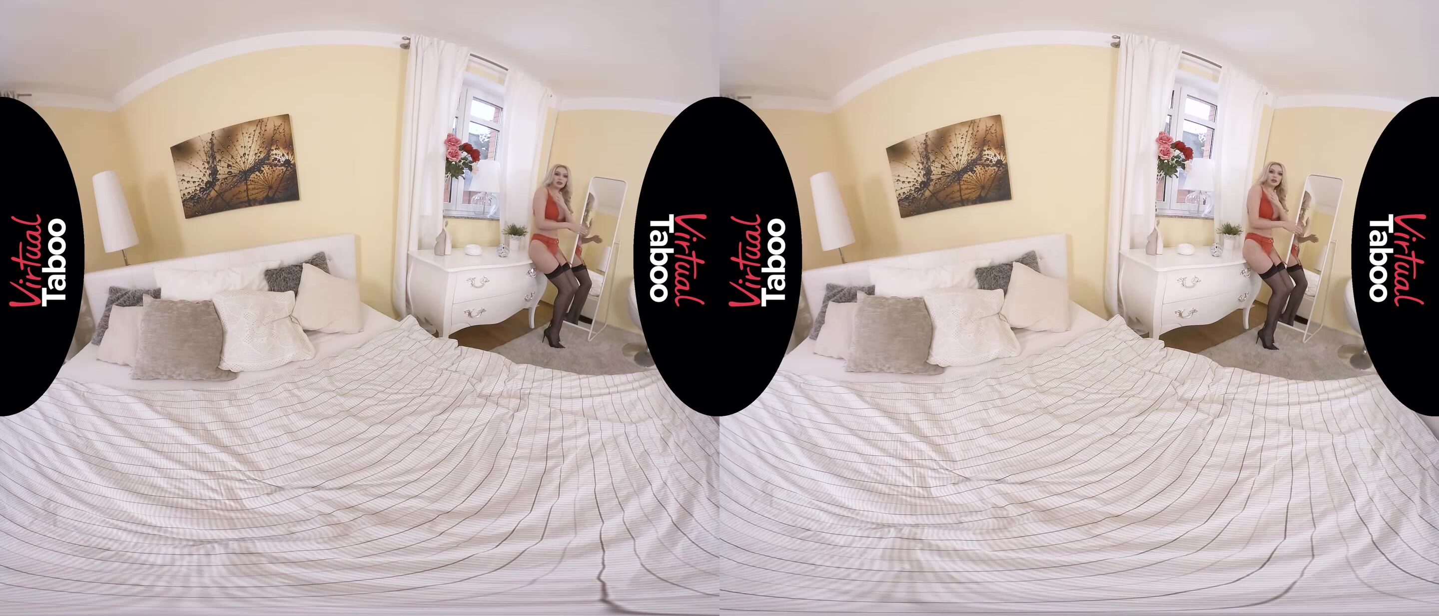Statuesque blonde bombshell Amber Jayne couldn't be happier with her new life. Recently married to a handsome and wealthy man, she finally has everything she ever wanted. Everything and a little bonus. Her new husband has a handsome young son who spends most of his time away at college. Even from far away, the young man fills his stepmother's thoughts with naughty seduction fantasies. When she is with her husband, Amber often finds herself thinking of his young, hard bodies son. At home alone, she tries on sexy lingerie and practicing her seduction technique. Wondering if she would ever have the nerve to try it for real, Amber teases in front of the mirror, slowly exposing first one huge breast and then the other. She wonders if her stepson loves her big boobs as much as his father or if he would be more drawn to her firm around ass. As she rolls around on the bed she shares with her husband, Amber pictures son coming home from college and seeing her half naked. Her fingers find their way to her dripping pussy as she fantasies about spreading her legs and telling him to come to mama and let her make him feel loved like never before. Though she knows she will never act on them, Amber's fantasies about her stepson give her best orgasms of her life.