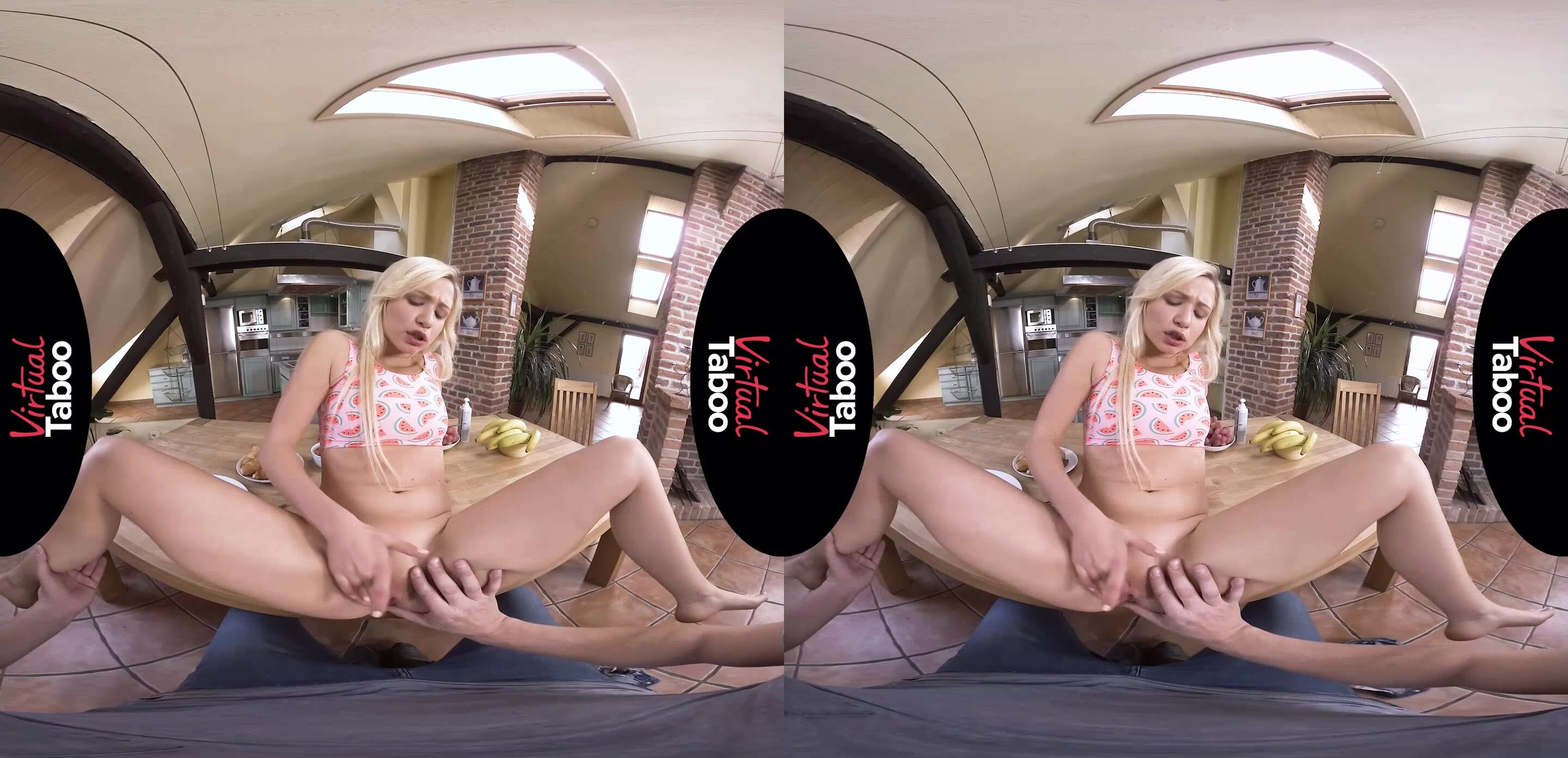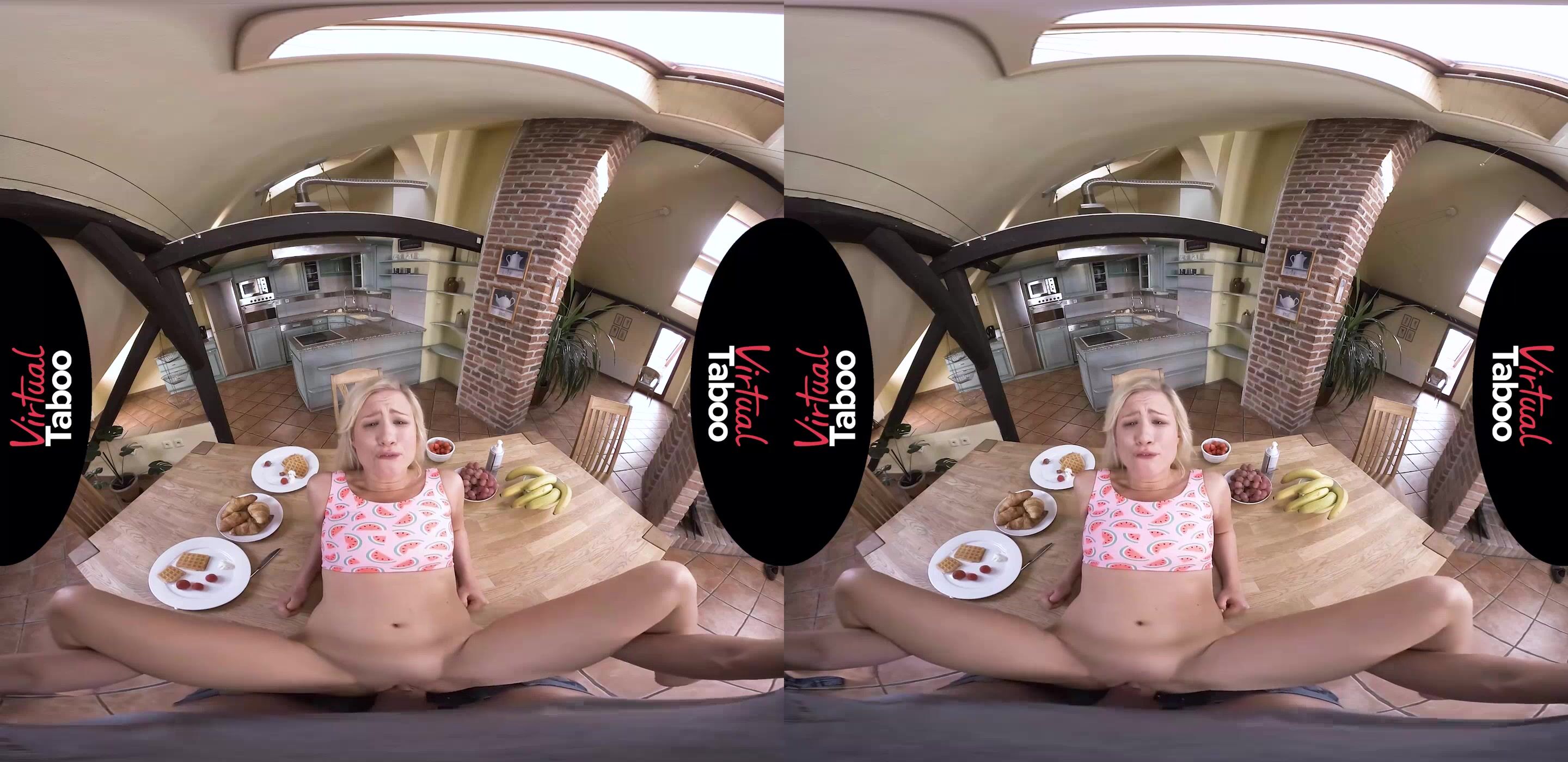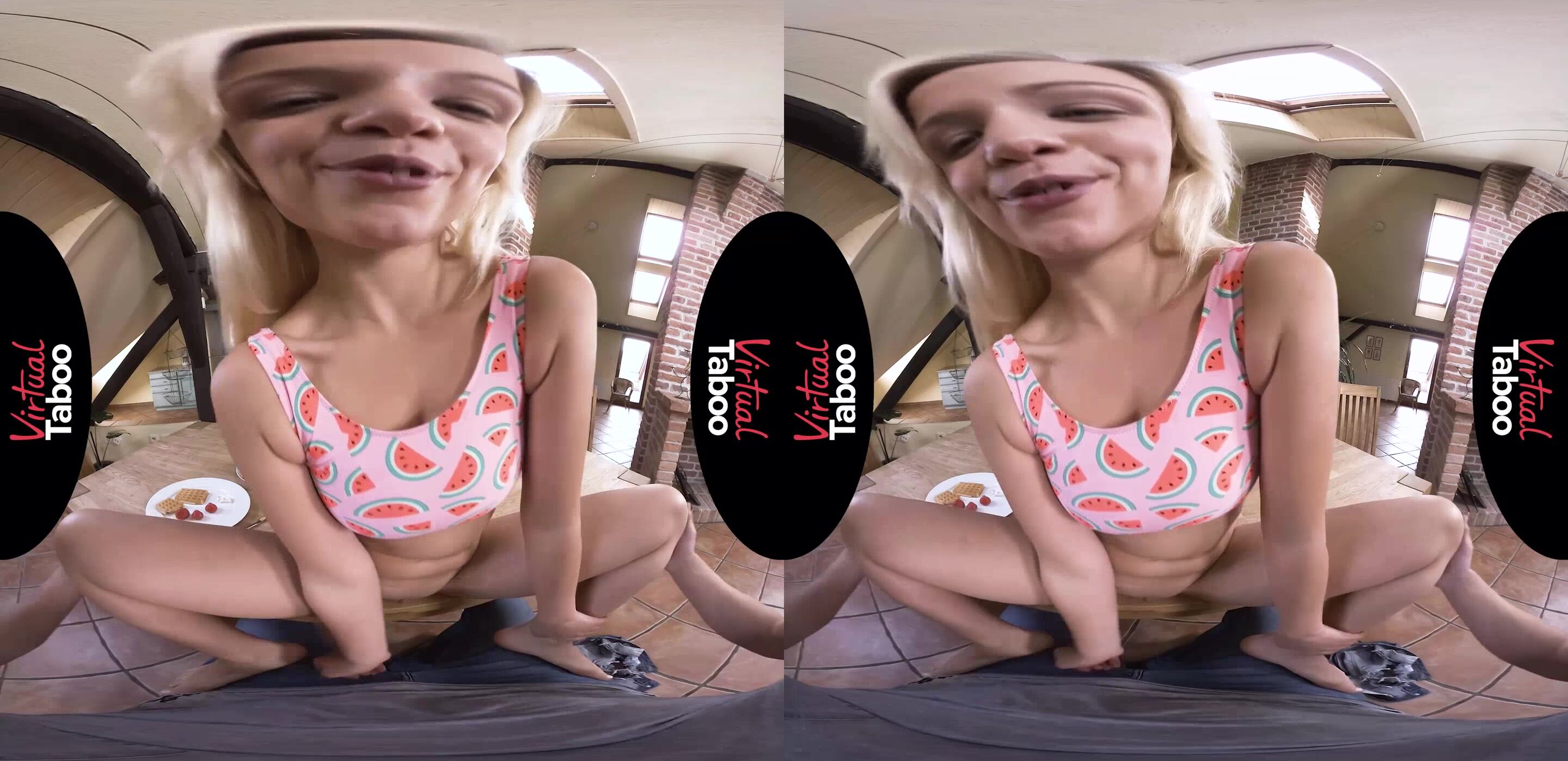 It was another day in the morning, but this time it was going to be a little bit special, at least that's what Gabi Gold had in mind. When her stepdad came to the table, she decided to prepare him a nice breakfast. While making the breakfast, she was teasing him with her tight half-revealed ass in her tight jean shorts, and her crop top while talking on the phone. It didn't take too long before she noticed that he was into her, thus she decided to take her plan further. Since Gabi knew that mom and her stepdad haven't done anything naughty lately, she got on the top of the table and she spread her legs wide open so he can have a nice look. After a little bit of foreplay, the two started fucking in hardcore fashion, but their session did not go on for too long as they heard that her mother is approaching. Later that day, the stepdad ran into his beautiful blonde stepdaughter in the bathroom, with nothing but a towel around her as she was doing laundry. Gabi Gold didn't hesitate to drop the towel so she can reveal her completely naked body to her stepdad in order to continue the fucking session from before. She passionately rode his rock-solid pecker in the regular and reverse cowgirl positions, and because her love tunnel was so tight, the stepdad was about to cum. That is when Gabi got off and started sucking him off, and before she knew it, her pretty face was covered in his warm cream.