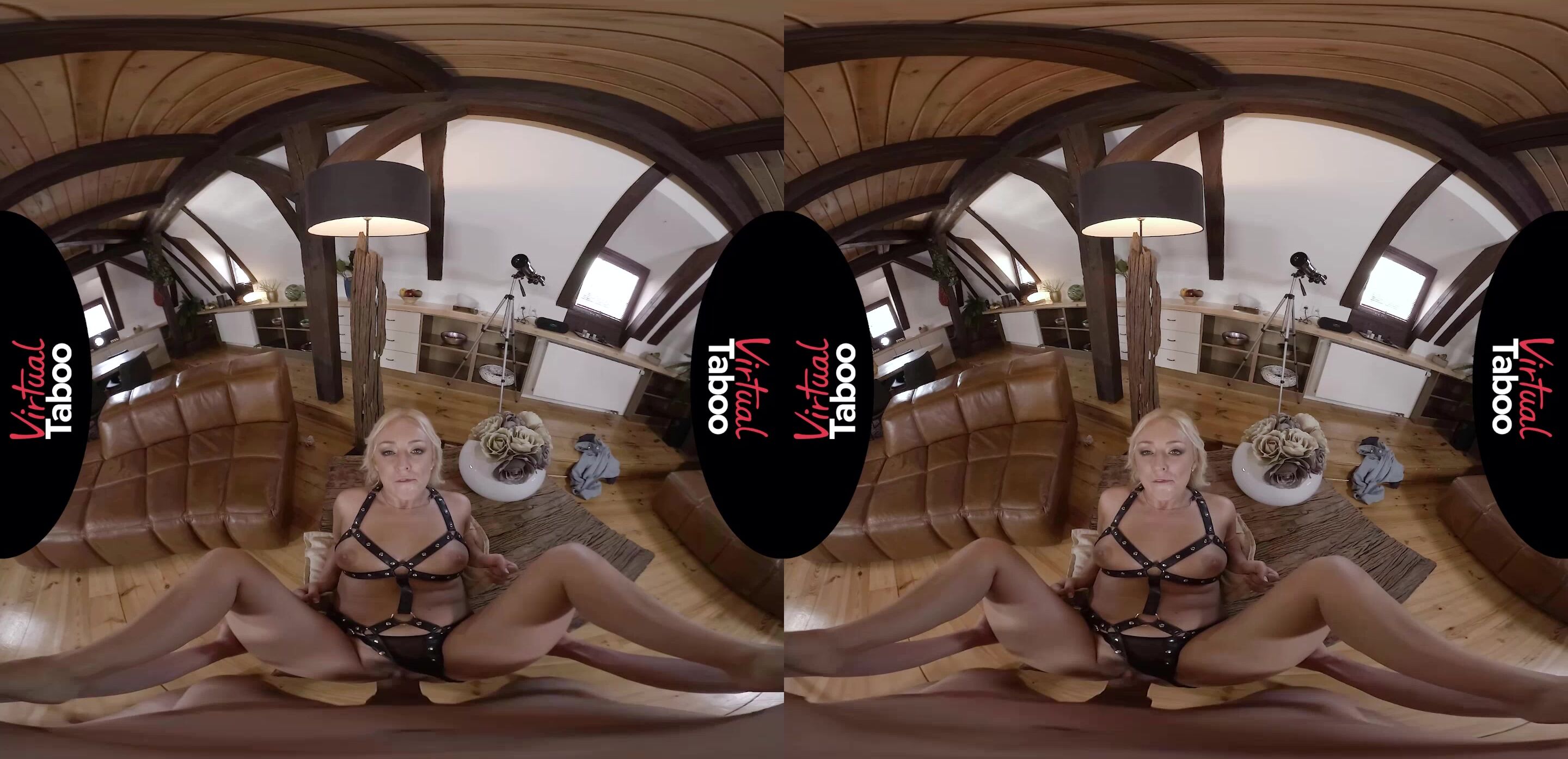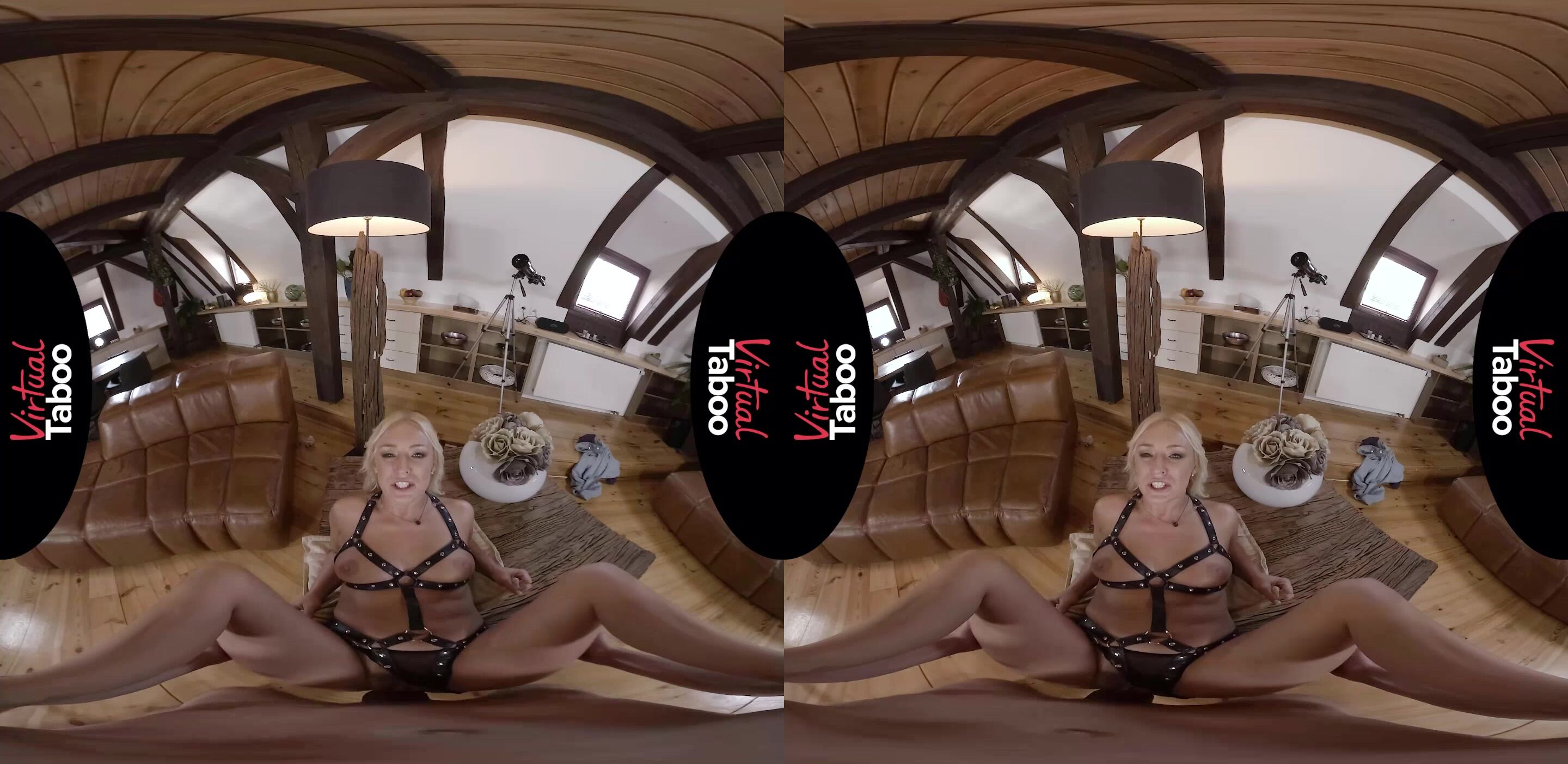 While her stepson was looking at the results of his failed math test, his blonde stunner of a stepmom entered the room and took them away from him. Of course, once she saw that he has failed the test, she got furious and started saying that she needs to punish him somehow. Going out of the room, this golden-haired vixen came back dressed in leather straps, which revealed her almost perfect boobs, and carrying a huge whip in her hands. This ravishing MILF was trying to teach her hung stepson a lesson, but, during the struggle, he developed a boner which popped out of his pants. Seeing just how big her stepson?s member is, this luscious dame could not resist but put it in her mouth and suck on it. Then, she slid the panties part of her suit to the side and slid his huge cock deep inside of her already insanely moist pussy. As she rode on top of her stepson?s shaft, this foxy lady?s big tits were bouncing all over the place. After a while, this seductive temptress turned her back towards her son and rode his giant schlong in the reverse cowgirl position before laying down on the table and letting him ram her orgasmic cunt in the missionary pose. Naturally, screwing his hot step mommy was a bit too much for this fellow and, sooner rather than later, he could not contain himself and went on to ejaculate deep inside of her juicy beaver for a rather messy creampie.
