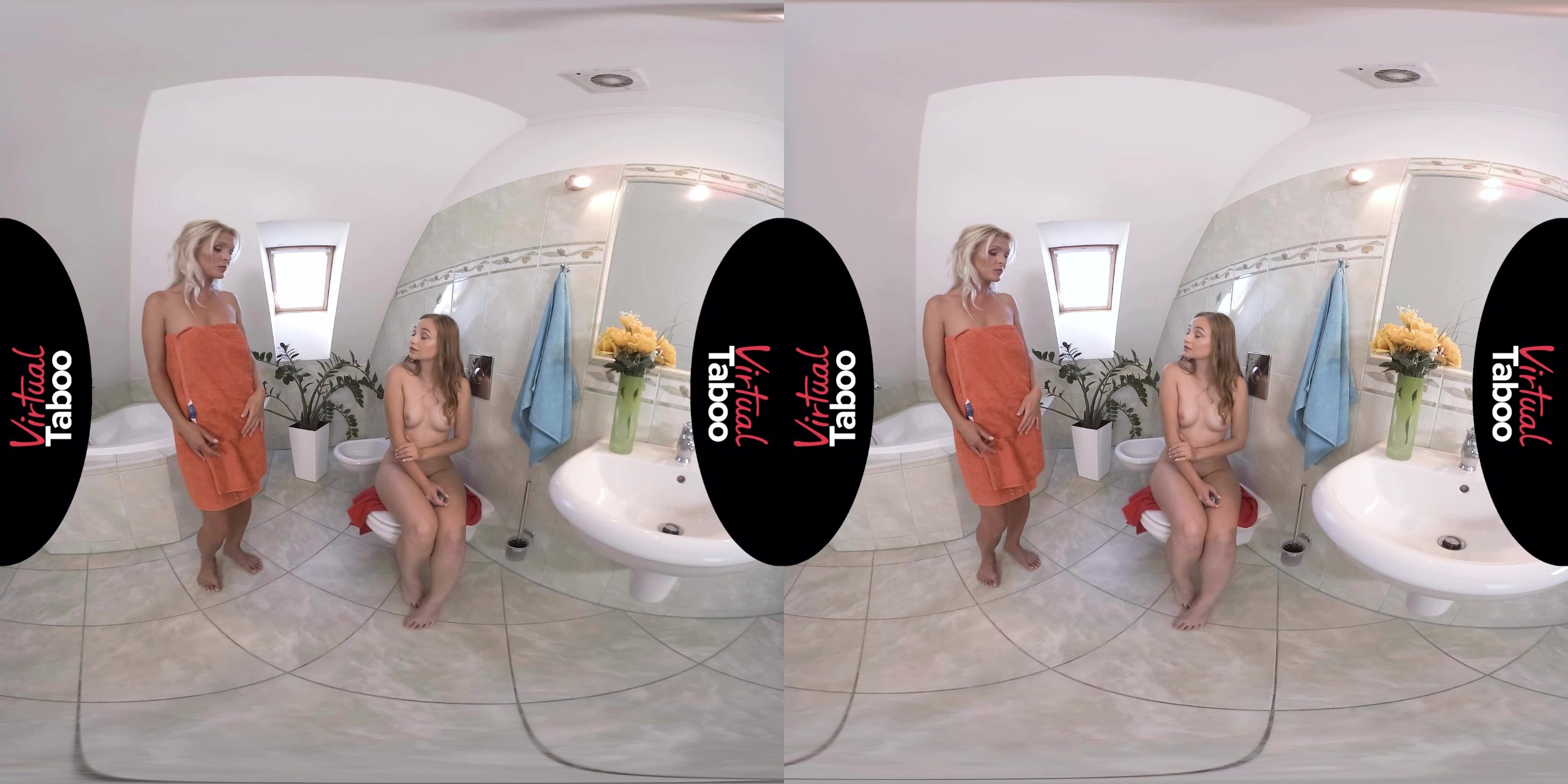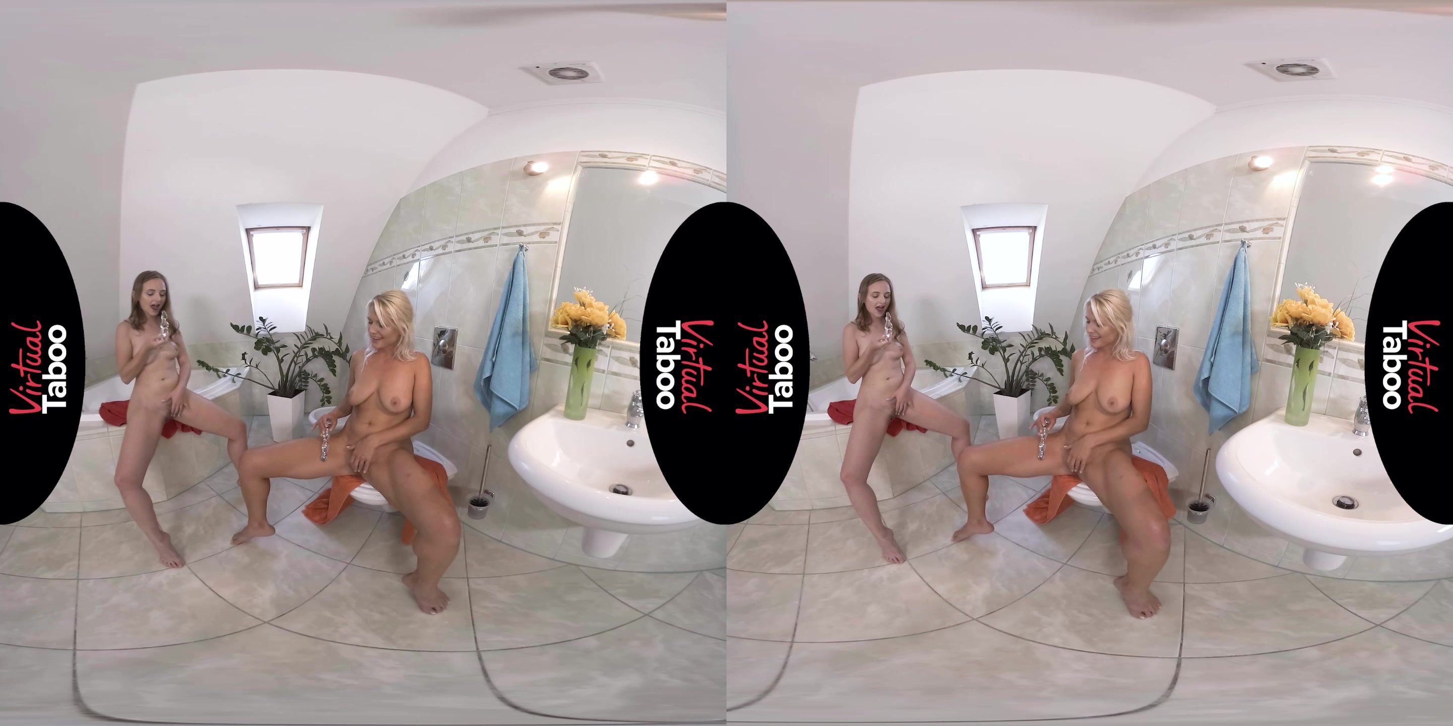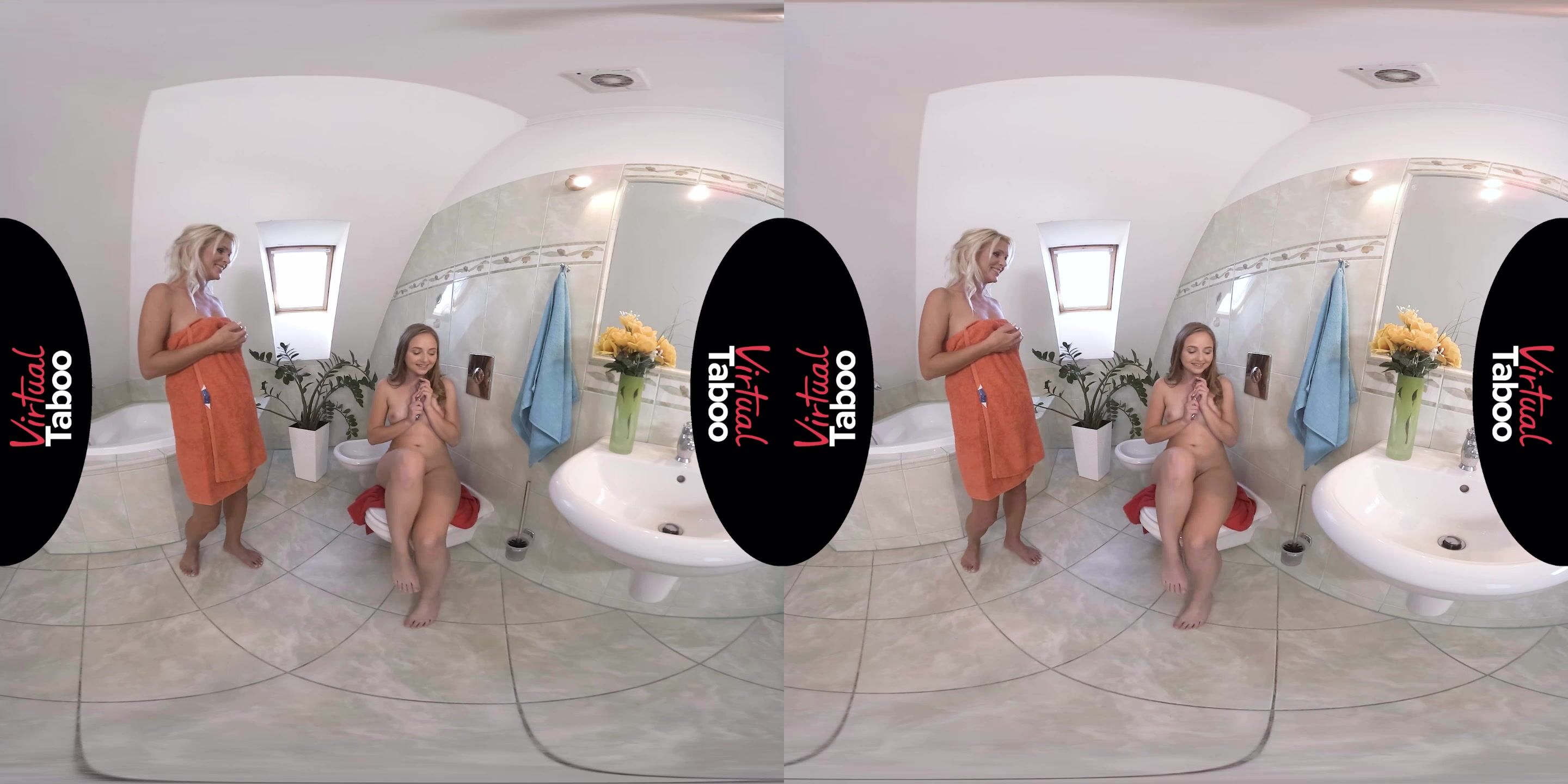 For gorgeous mature mom Kathy that morning began with weird noises coming from bathroom. She was just about to take a shower, entered the bathroom and found her sweet teen daughter bating her young hairy pussy like a wild. After a minute of a small stress for both girls mom began to complain how bad her hubby in bed during last years. She also mentioned that she was aware of those magic toys the daughter hiding from eyes. But now seems to be is a good moment to try them together. And they do it.