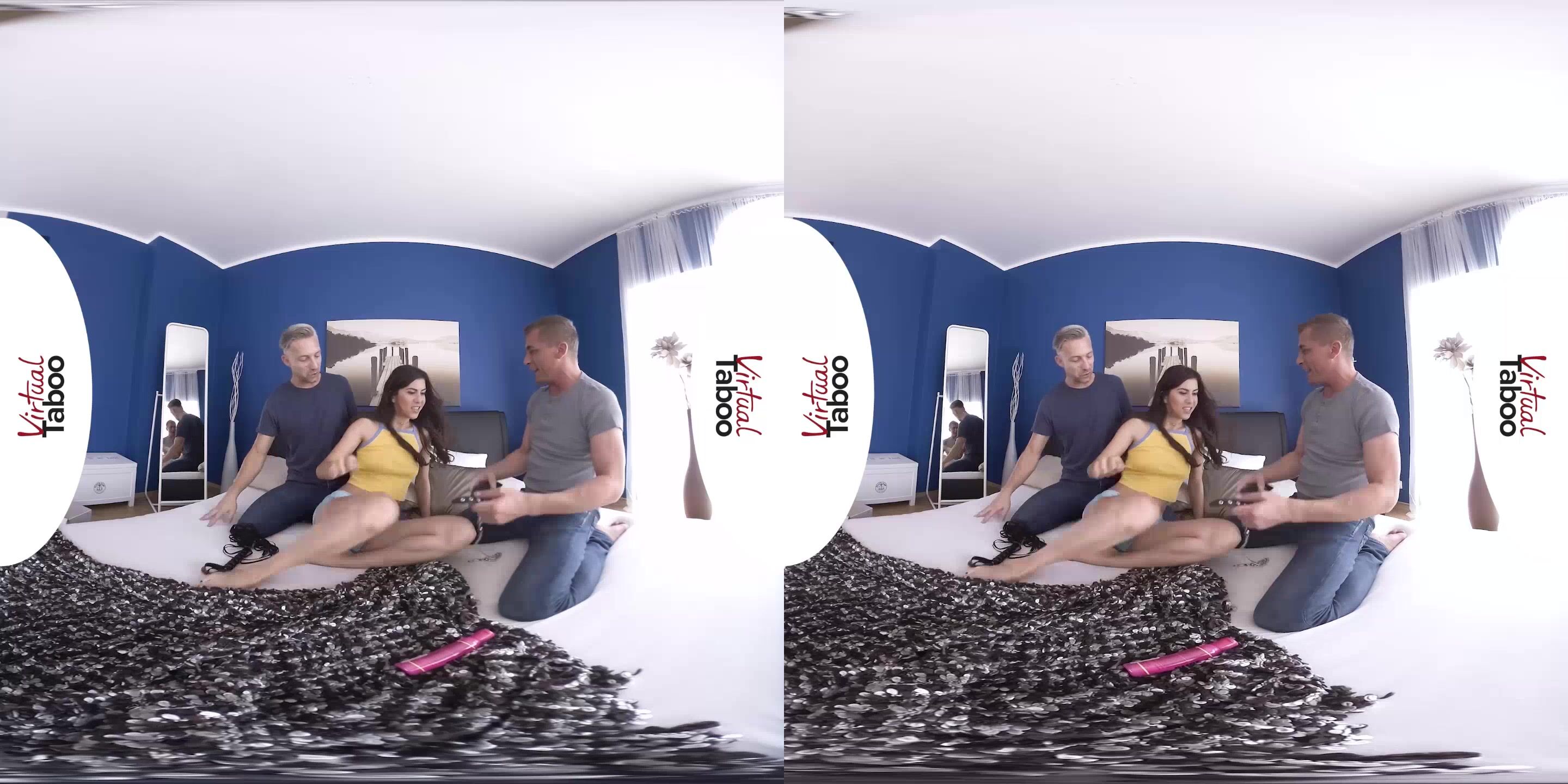 I always thought my step sister Anya is a good girl. Till the day when me and my friend found a box under her bed with weird stuff inside. We found a whip, a collar and other kinky things like mouth ball gag. We were literally shocked and at that moment she came to bedroom. We had some fun over her first and then we both with my friend felt strong erection in jeans. Anya was pretty impressed seeing this and agreed to get this party started even before we asked..