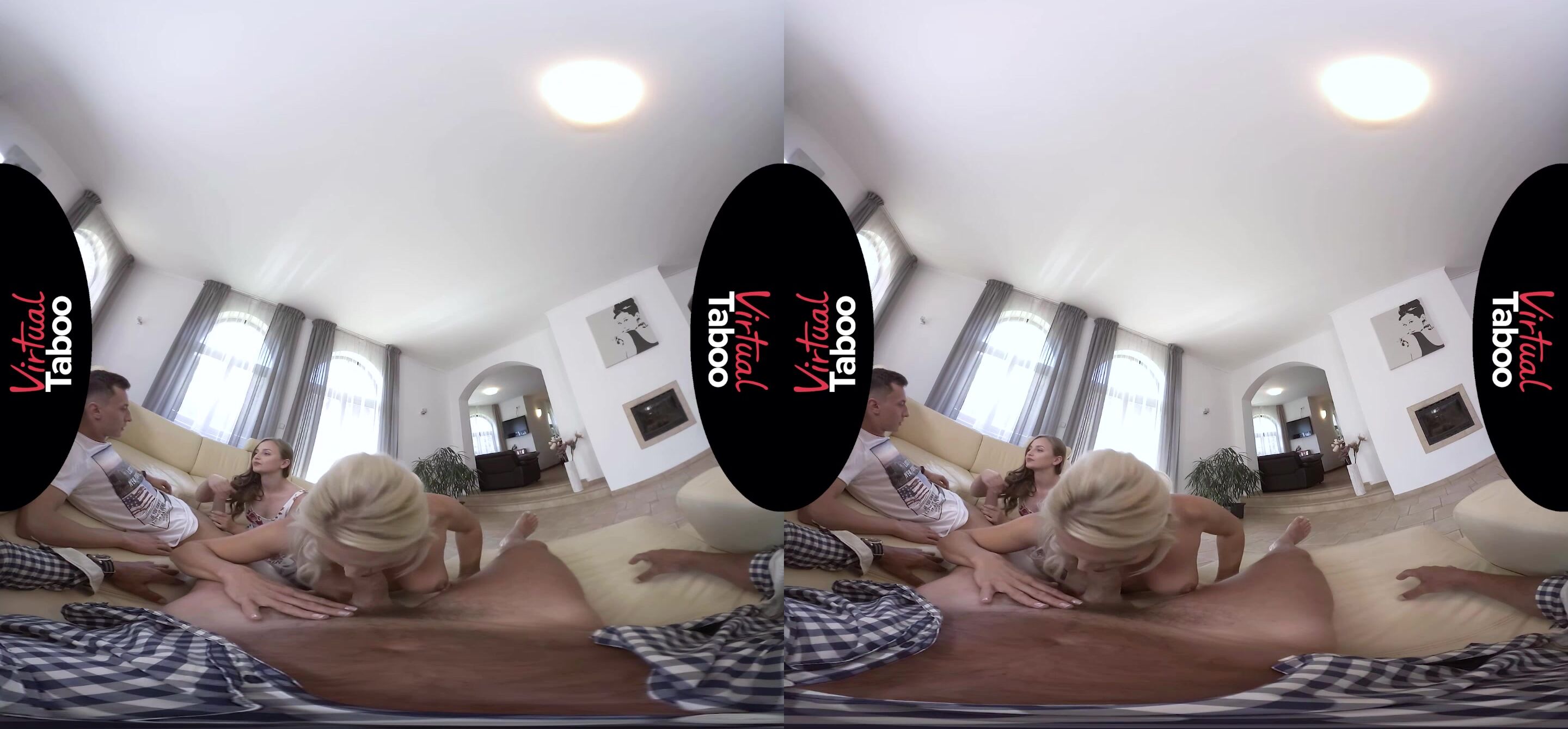 Dinner time come, hot blonde mom set the table and called her daughter and stepson to come to the dining room. They entering the room in a gloomy mood, which is nothing new for them, and start eating. During this time, the stepson asked his parents whether they have slept well last night, which caused the cute petite daughter to blush. This made their parents realize that these two are actually sleeping together. In order to retaliate, the gorgeous daughter started taking dirty selfies by putting a sausage in her mouth which, in turn, made her stepbro develop a boner. Noticing this, his stepmom pulled his shaft out of his pants while the kinky stepdaughter showed off her hairy pussy to her hung stepdad. Before you knew it, the girls were down on their knees sucking off the male members of their stepfamily. Then, all four of them went to another room, away from the prying eyes of their neighbors where the chicks continued sucking on dongs before sliding them in their already wet pussies. Riding on top of her stepdad's big dick, the petite hottie of a stepdaughter also took turns sucking her stepbrother's cock before he got to fuck his stepmother really hard from behind. As the babes went on to make the stepfather cum on their pretty faces, horny bro used the opportunity to nail his sis in the doggystyle position. Of course, after his dad ejaculated, it was time for the son to do so too all over the faces of his stepmom and adorable stepsister.