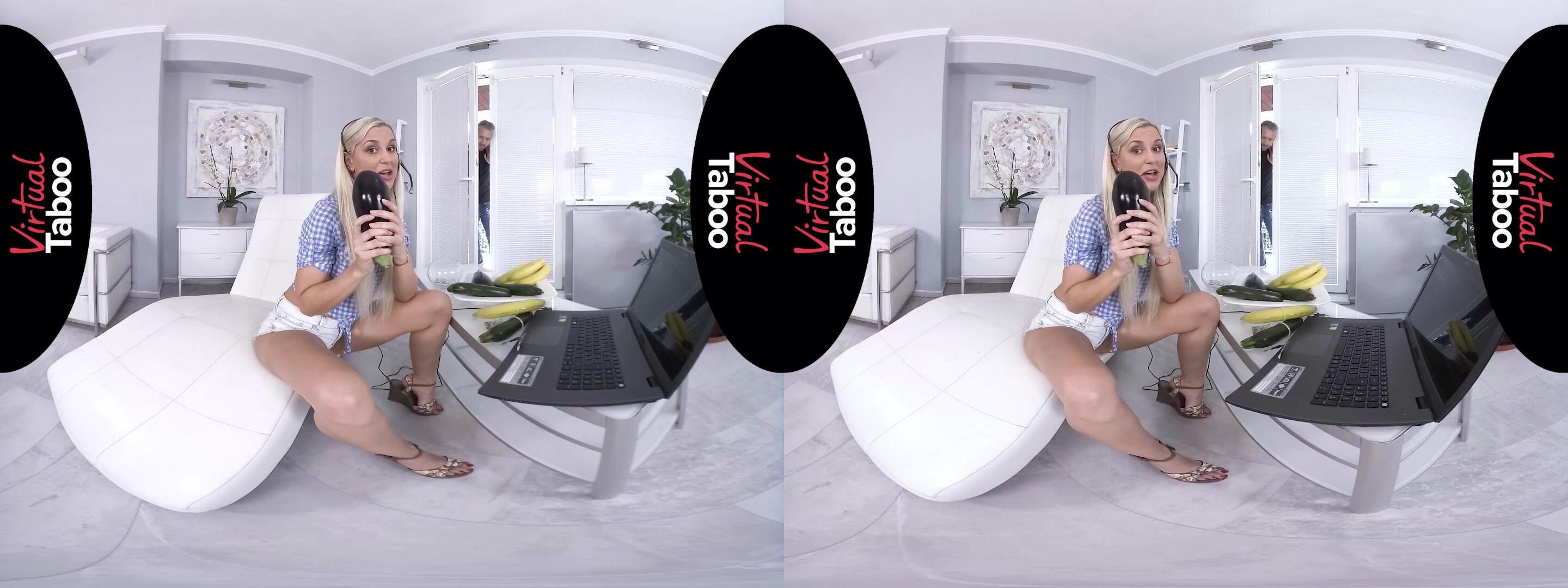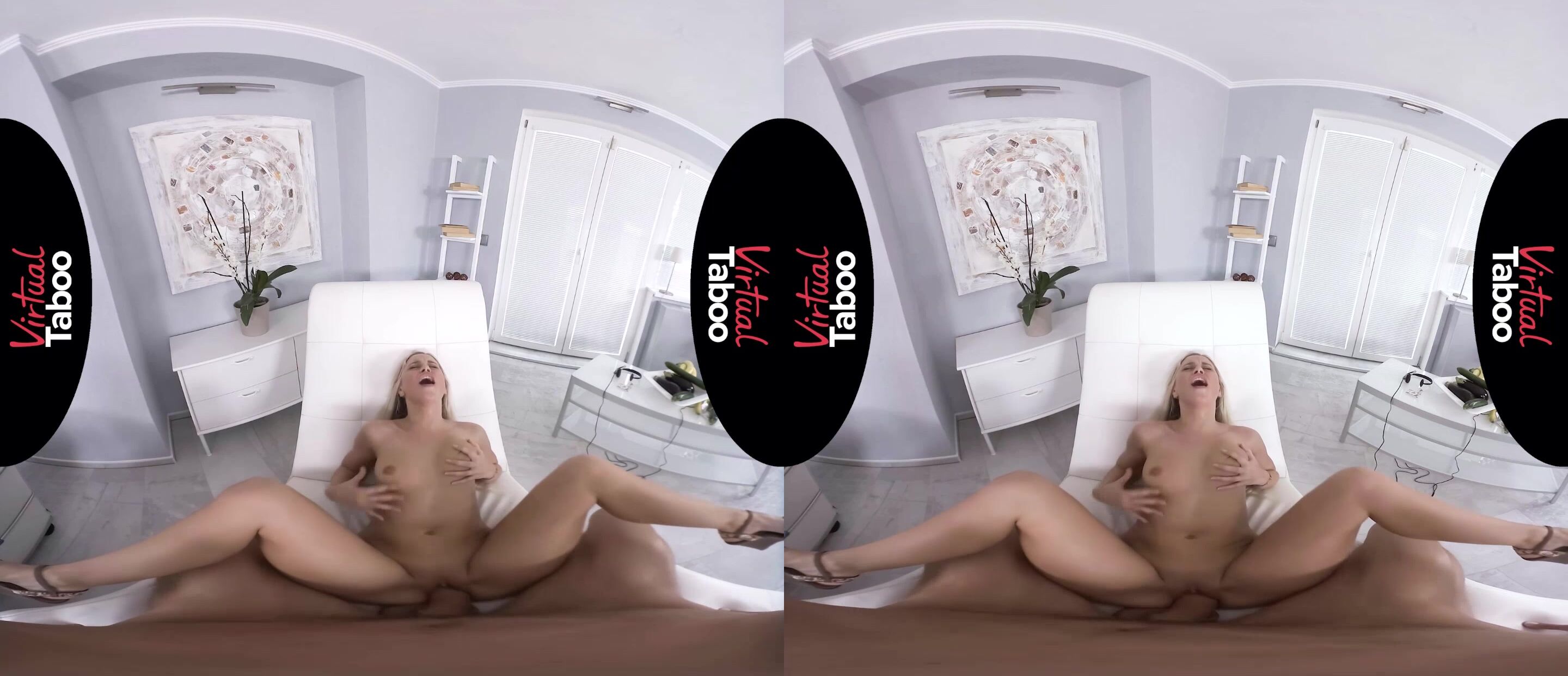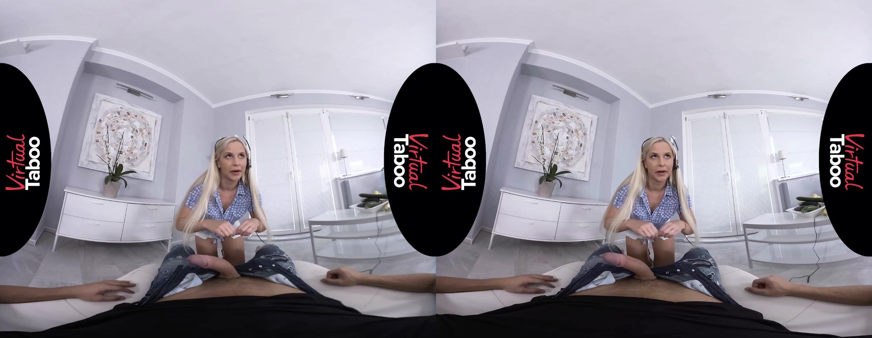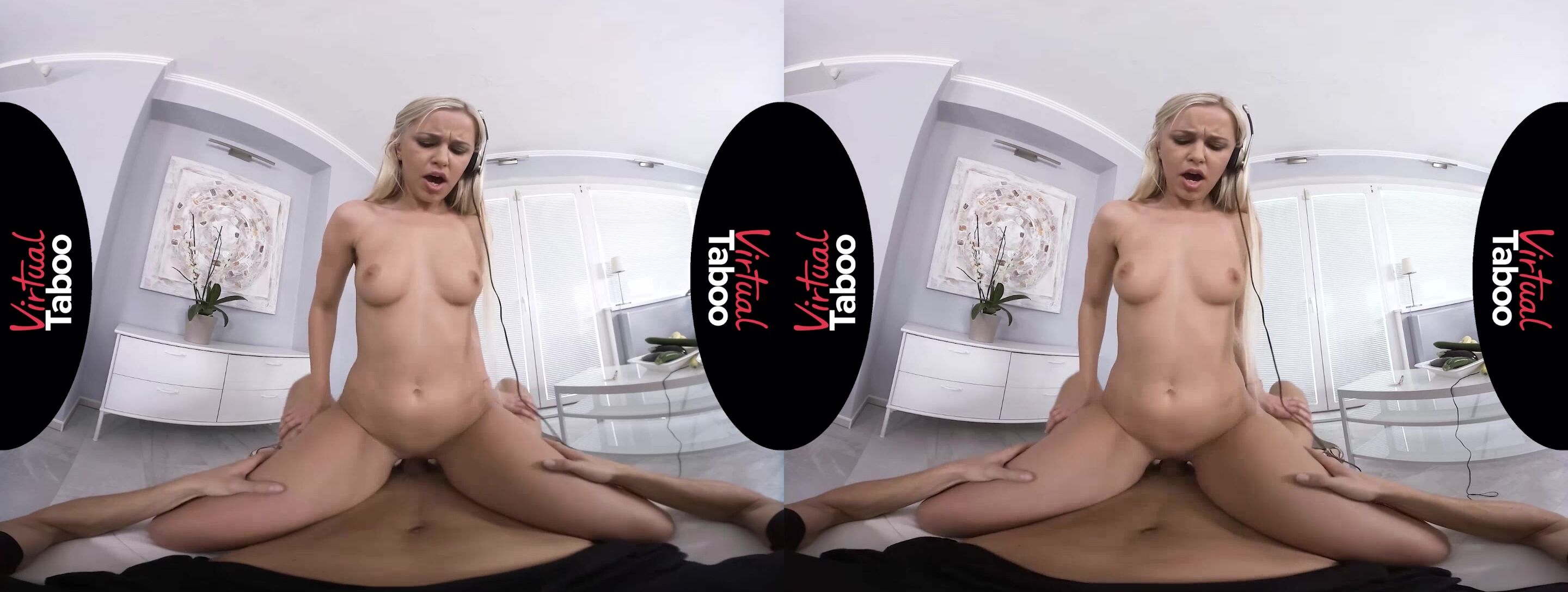 Adorable blonde Lola Myluv was doing a live stream on her social media on the topic of 'how to put a condom on with your mouth'. In order to showcase her method practically, she decided to use several vegetables and a banana. Her trickster of a stepbro saw her doing it and decided to 'improve' the show by appearing behind her. Naturally, lovely Lola noticed him and got upset, but he quickly calmed her down and told her that she has been doing it all wrong since she needs a real cock in order for her viewers to fully understand. And, of course, she is more than welcome to use his already hard pecker. It took a bit of persuasion, but this cute blondie decided to pull out her bro's massive cock and use her mouth to put a condom on it. But, once his pulsating member was actually in her mouth, this gorgeous vixen felt the pussy juices stirring between her legs and off went the condom as well as all of her clothes. Baring her shaved pussy and small boobs, our sexy Lola sucked on her stepbrother's dick for a bit before sliding it inside of her wet twat for a ride. Then, she turned her back towards her stepbro and bounced on his stiff shaft in a reverse cowgirl position before laying down in the sofa and letting him pummel her juicy snatch that way. At the very end, this petite honey let her bro cover her tight belly with his sticky cum.