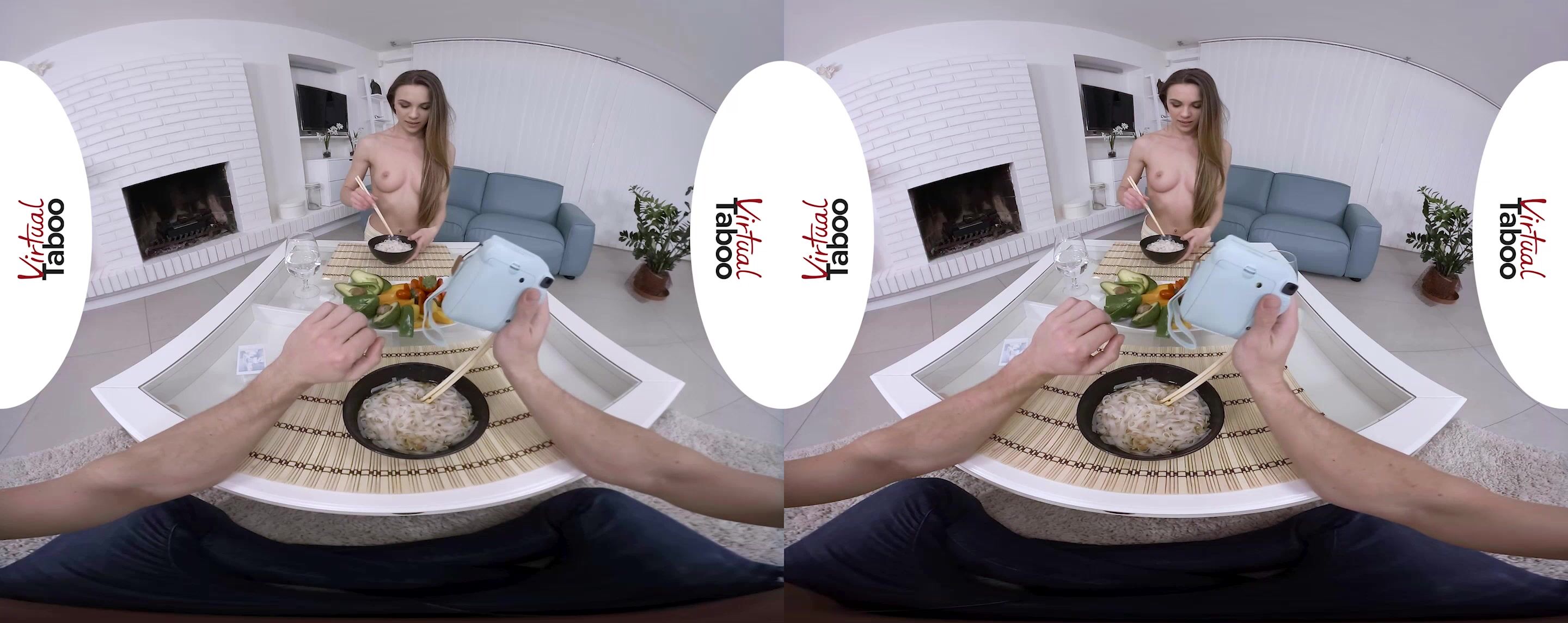Stepbrother and his slender brunette of a stepsister Veronica were having noodles for lunch and talking before the subject inadvertently changed to the latest post in a social media from Kim Kardashian where she was eating noodles topless. That is...