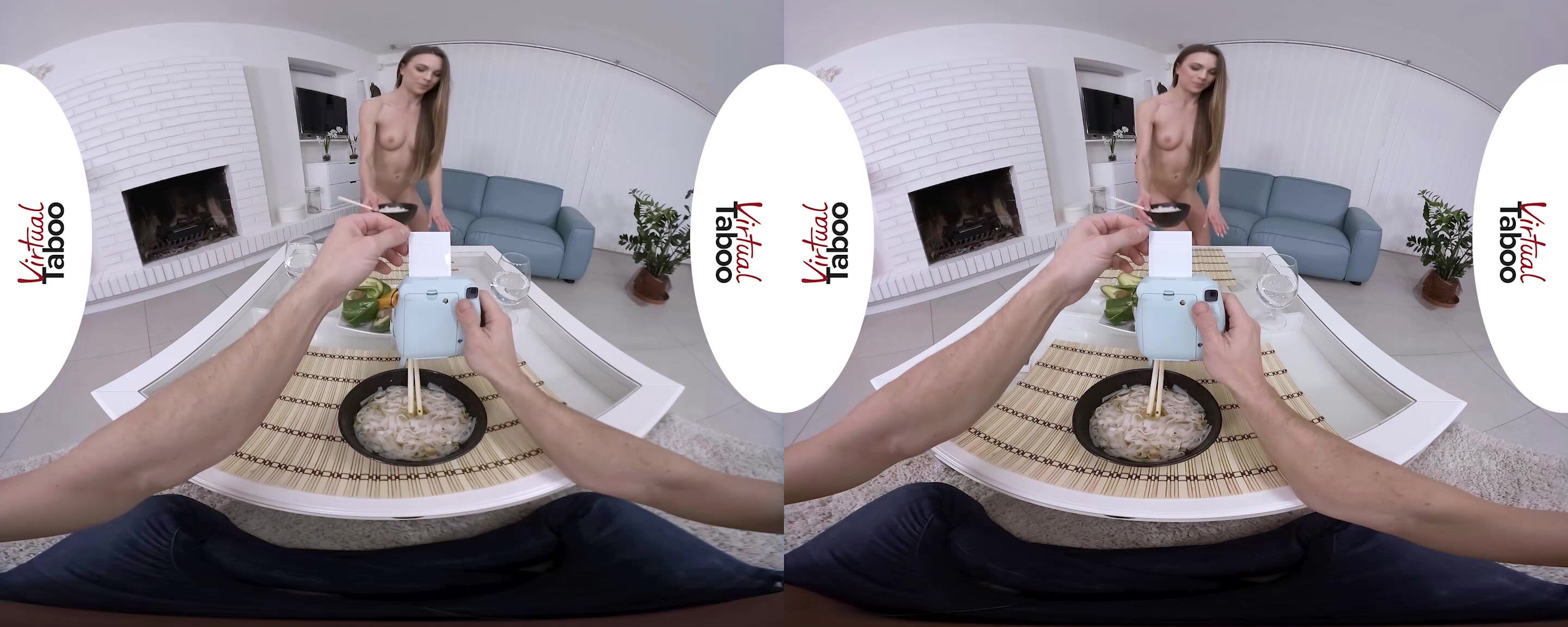 Stepbrother and his slender brunette of a stepsister Veronica were having noodles for lunch and talking before the subject inadvertently changed to the latest post in a social media from Kim Kardashian where she was eating noodles topless. That is when the hottie of a stepsis had the idea to recreate it and pulled out a Polaroid camera from a nearby drawer. Veronica removed her top and had her bro help her recreate the post to the smallest of details. But, during the shoot, she got extremely horny and started questioning her bro about her ass, as well as about anal sex and whether he has done it, whether it is painful for a girl, as well as whether he likes it. Soon enough, she was demanding to see his cock and upon seeing just how big it was, Veronica changed her mind about the anal sex, but still went on to suck it good. Then, she proceeded to stick it deep inside of her cleanly shaved pussy and ride it before eventually caving in and letting her bro pump her tight asshole. After that, she turned her back towards him and slid his cock in her ass once more in order to ride it in the cowgirl position. When she was done with that, this sensual looker got down on all fours and popped her cute butt in the air in order to make it easier for her hung stepbrother to drill her butthole from behind. And, when he could not keep it in his balls anymore, Veronica’s bro covered her buttocks with his sticky cum.