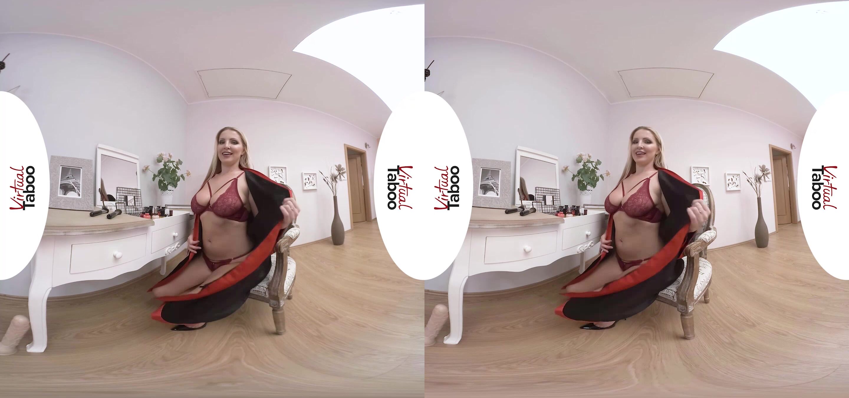 While putting makeup on, a luscious blonde MILF Georgie Lyall saw the shape of her curvaceous body in the mirror and felt the delicious muff between her legs moistening. Knowing that no one would interrupt her, this stunning looker decided to slowly pull down her black robe and reveal her lingerie-clad bod. It was not that long before the lingerie started being taken off as well, and Georgie's lovely tits came out in the open, as well as her juicy cunt. Being completely naked, this desirable honey went on to sit back down and start caressing her curves. Naturally, little by little, she got closer to her wet snatch and started rubbing it slowly. Seemingly out of nowhere, this foxy bombshell pulled out a humongous rubber dildo. Of course, the very sight of it amazed her and made her pussy even wetter. Fooling around with it by licking it and sliding it between her tits, saucy Georgie had her fun before going back to the main task at hand - making herself orgasm. Taking the dildo in one hand and sitting back in the chair again, this ravishing vixen used her other hand to mess around with her pussy lips. Using her skilled fingers to touch all the right spots, Georgie felt the pressure building up in her body as her breath became shorter and shorter and her moans became louder and louder. And, when she could not contain herself anymore, this smoking hot stunner started rubbing her cunt ferociously until she reached the highest peak of pleasure and orgasmed so hard that her entire body shook