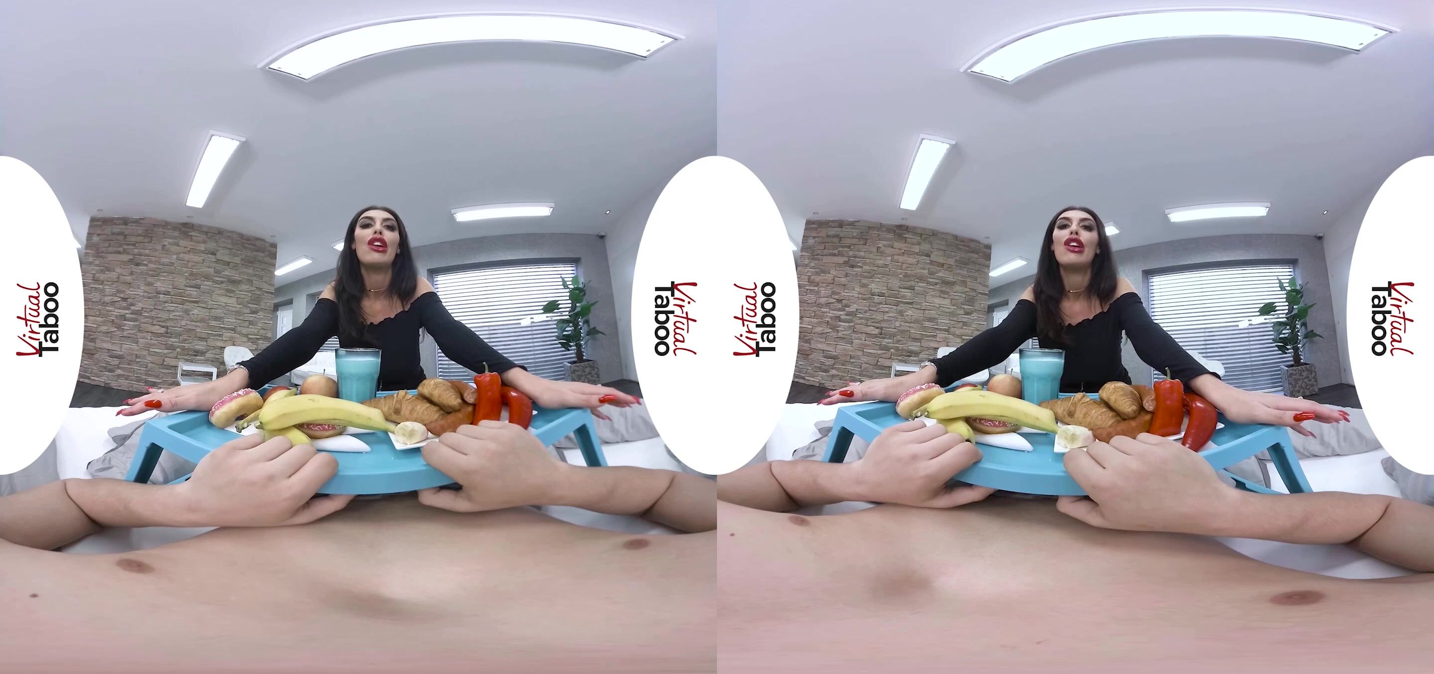 When her husband went to work that fateful morning, busty brunette bombshell Ava decided that today would be the day she finally got to taste her stepson’s large wiener. Taking a breakfast tray filled with food to his bedroom, this fantastic MILF decided to wake up the hung son of her hubby and immediately start flirting with him by licking a paprika and putting it between her boobs. Seeing how this fired him up, our desirable mom Ava went on and took a sausage before licking it as well. Soon enough, her tatas popped out and she used doughnuts to cover her nipples before taking two bananas, sliding them between her giant tits and pretending to suck them. But of course, neither her stepson nor this hot stepmom could handle all of the heat anymore, so he went on to lick her nipples and play around with her hooters before she had him lie down in the bed and blew his stiff shaft like a pro. Then, our sexy Ava sat down in the chair for some pussy-licking before having her stepson drink milk off of her large melons. After that, she finally took his hard pecker and slid it deep inside of her already dripping wet twat for a ride before turning her round tush towards her stepson and bouncing on his dick in the reverse cowgirl position. When she was done doing that, she then let the dude hammer her orgasmic pussy from behind before making him lie down again and sucking him off in order to taste the white cum coming out of his cock.