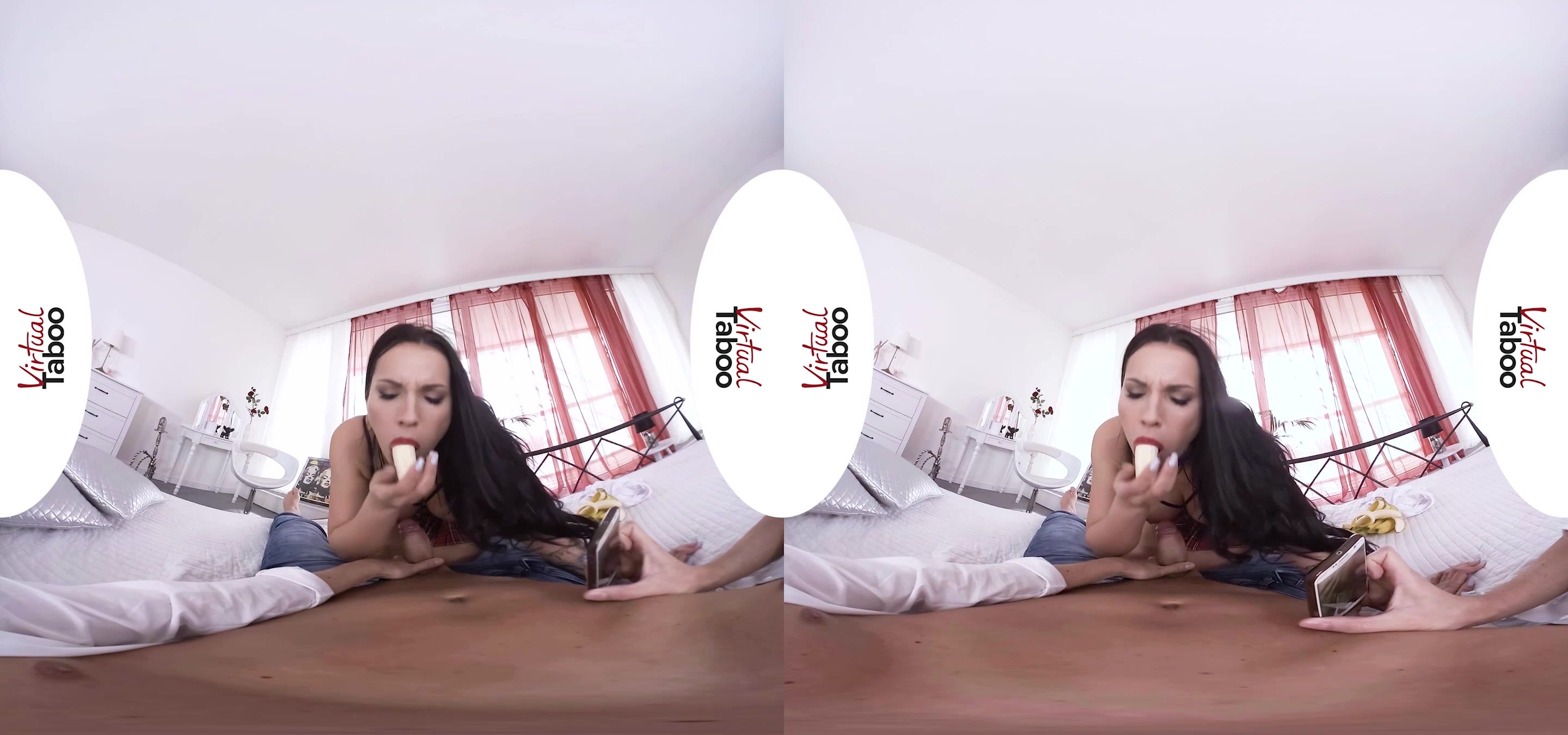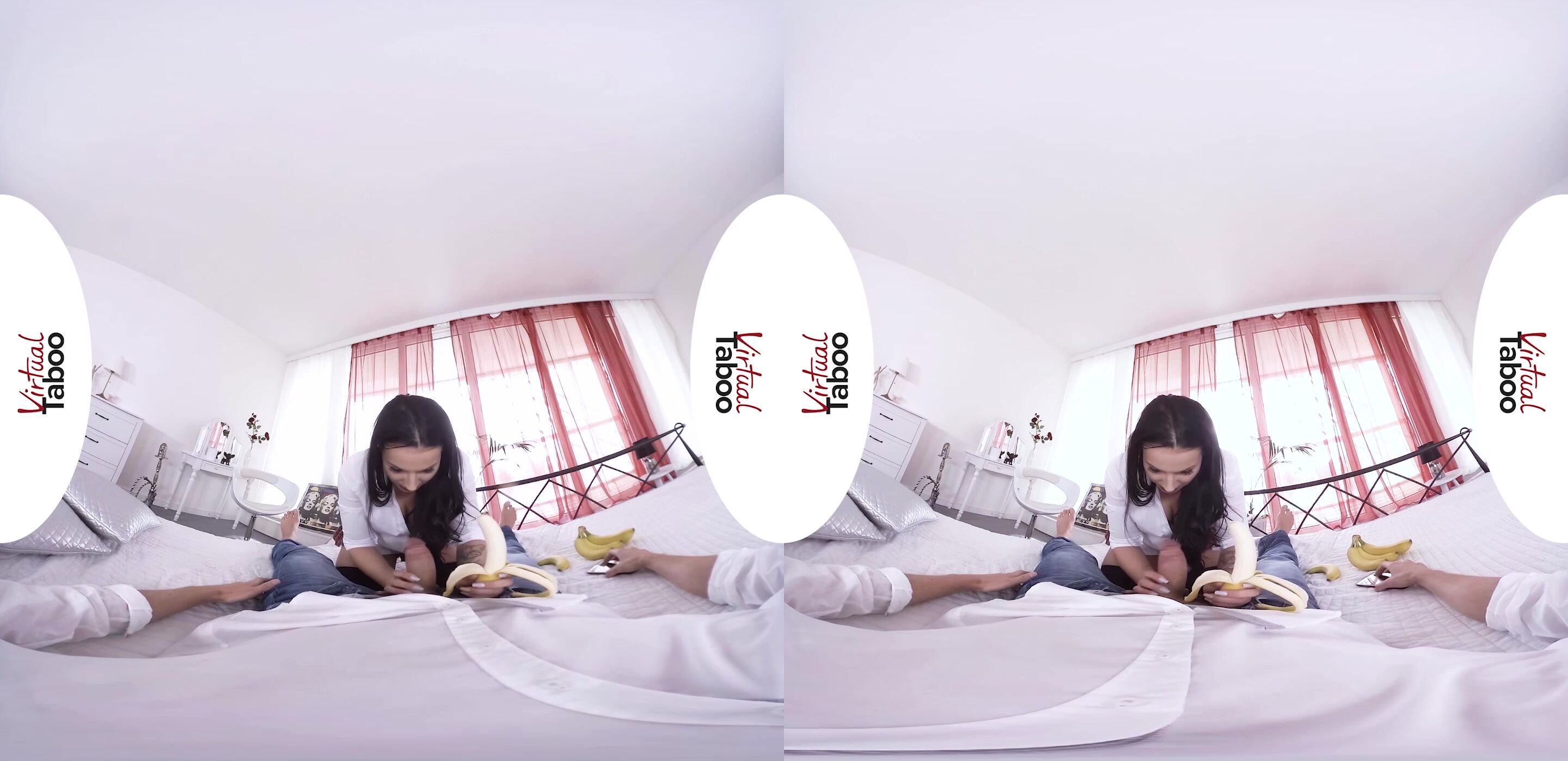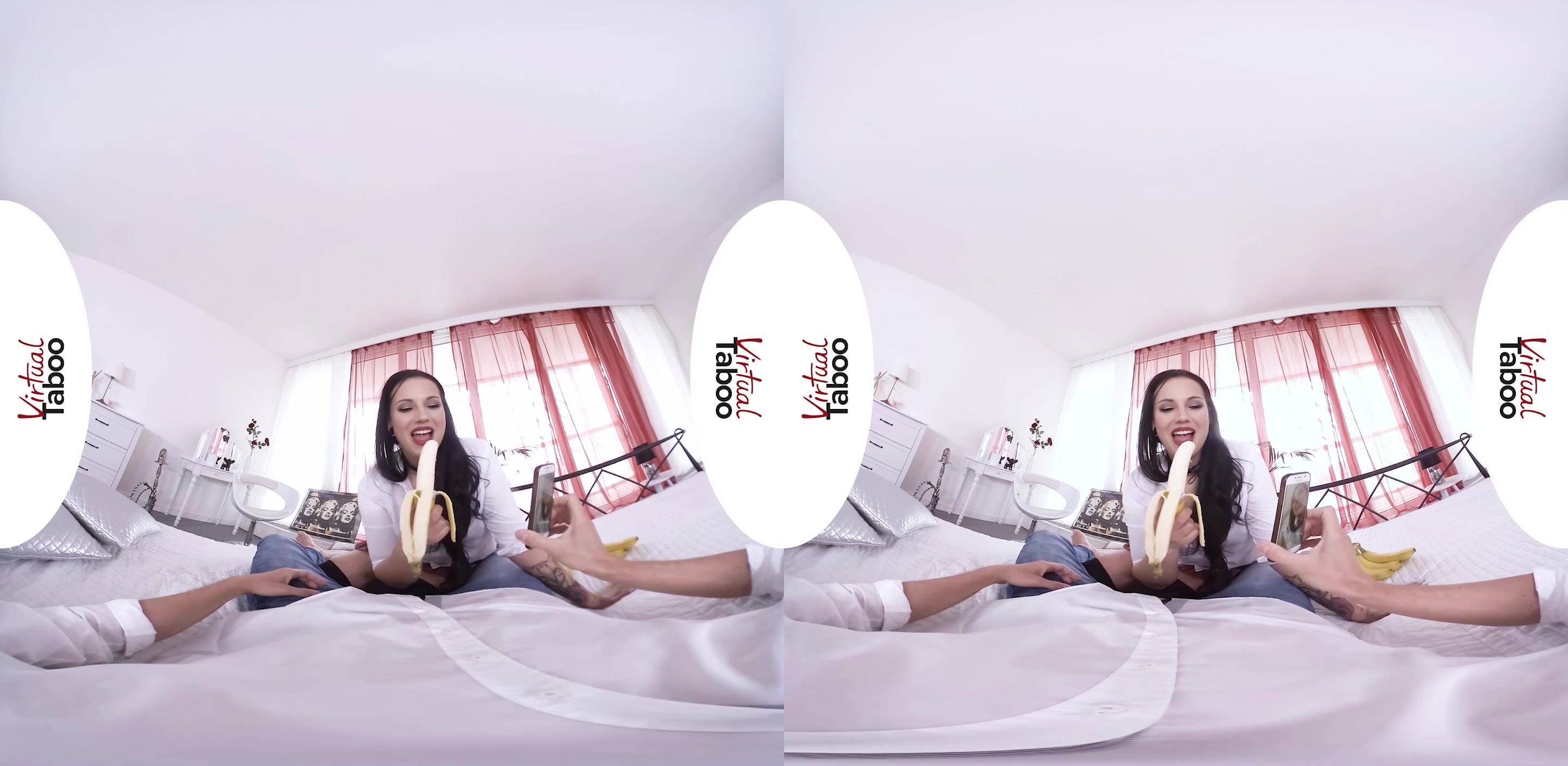 Stunning babe Jolee Love is trying to become a popular vlogger, which is why she has been following all sorts of trends in order to improve her channel on a certain video tube site. She has heard that a particular banana challenge, a challenge where you have to slide a banana deep inside of your throat is gaining in popularity, so she asked her handsome step brother to help her out with making a video of her trying to do it. While her bro was using her phone to record the video, this seductive brunette lassie tried several times to do the banana challenge, but she only managed to fail miserably every single time.That is when she came up with an idea of using her stepbro’s massive dick in order to widen her throat for the challenge. Whipping it out of his pants, foxy bombshell Jolee inserted her bro’s large pecker in her mouth together with a banana before baring her perfectly round hooters and her cute ass, as well as her juicy snatch. After sucking on her stepbro’s big boner some more, this raven-haired sister slid it in her moist beaver for a ride while eating a banana before turning her back to him and bouncing on his dick like that for a while. Lying down on her back, this fabulous curvy stunner got her orgasmic pink slit pumped really hard before her bro could not keep it in his balls anymore and went on to spray his hot jizz all over her tight belly and big tits.