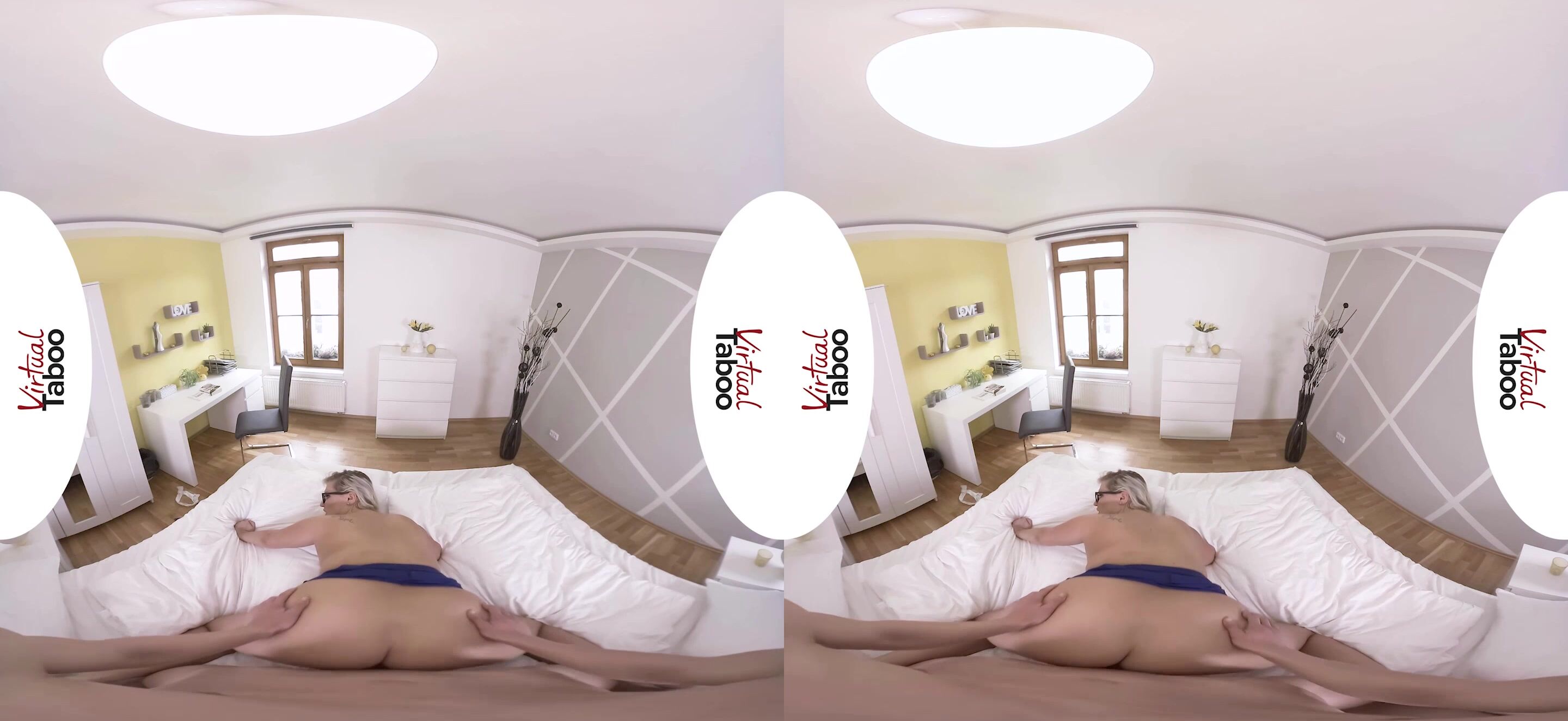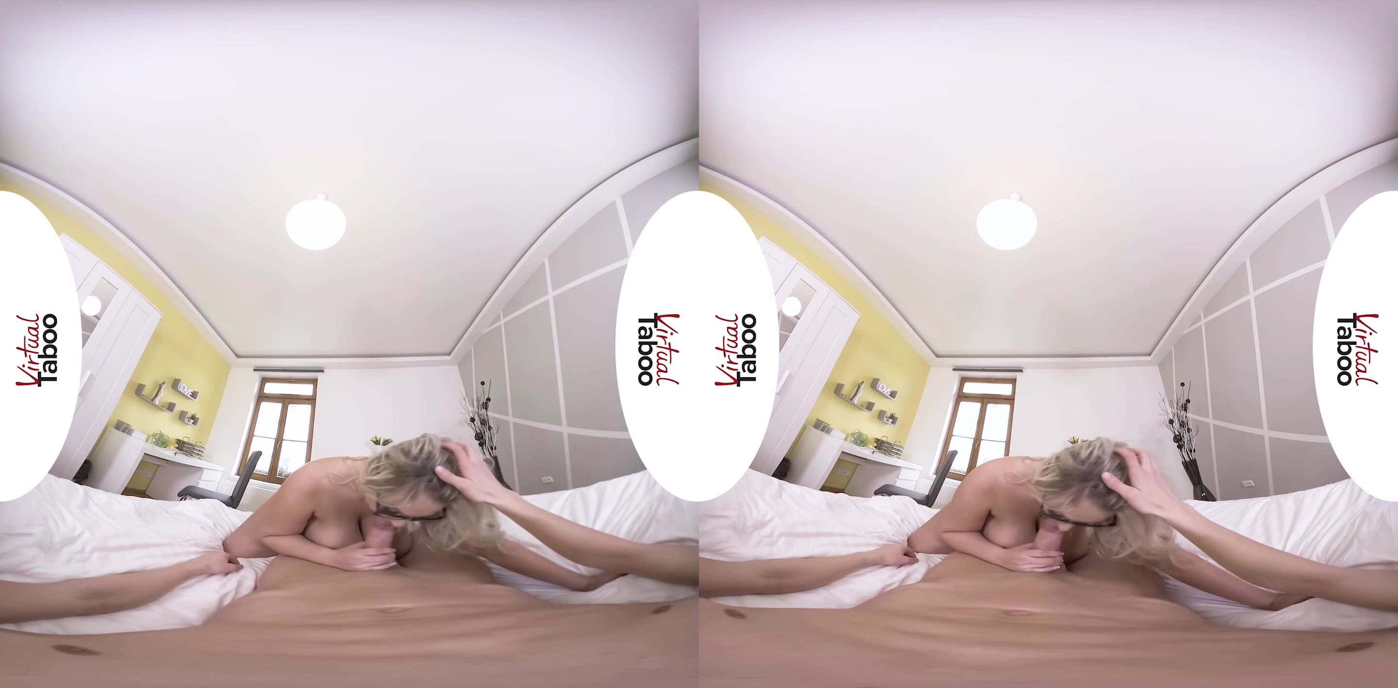 Buxom blonde bombshell Krystal was a German teacher and she promised her step nephew that she would give him lessons in her spare time. And, sure enough, one day, the two of them were in the same room and the stacked step auntie was explaining a few words in German by pointing at body parts. But, soon enough she noticed that her nephew was not paying attention to the lesson at all, and the bulge in his pants was more than prominent. Since this stunning bespectacled aunt had nothing against her nephew playing with her giant boobs, as well as her other body parts, she pulled his big dick out for a quick suck before letting her hooters loose and having her nephew lick them. Then, this fantastic MILF put her nephew?s huge cock between her large tits before sliding it deep inside of her already moist pussy for a ride. After beautiful Krystal bounced on his shaft facing him, she turned her back towards her nephew and rode his member in the reverse cowgirl position as well before getting down on all fours and letting him hammer her orgasmic beaver from behind so hard that she moaned loudly with immense pleasure. Since the boy really could not hold it in anymore after a while, he had his sexy and curvy auntie lie down on the bed before unleashing a proper volley of sticky white cum which covered both her glasses and her pretty face almost completely. You can bet that he will want to take German lessons again soon!