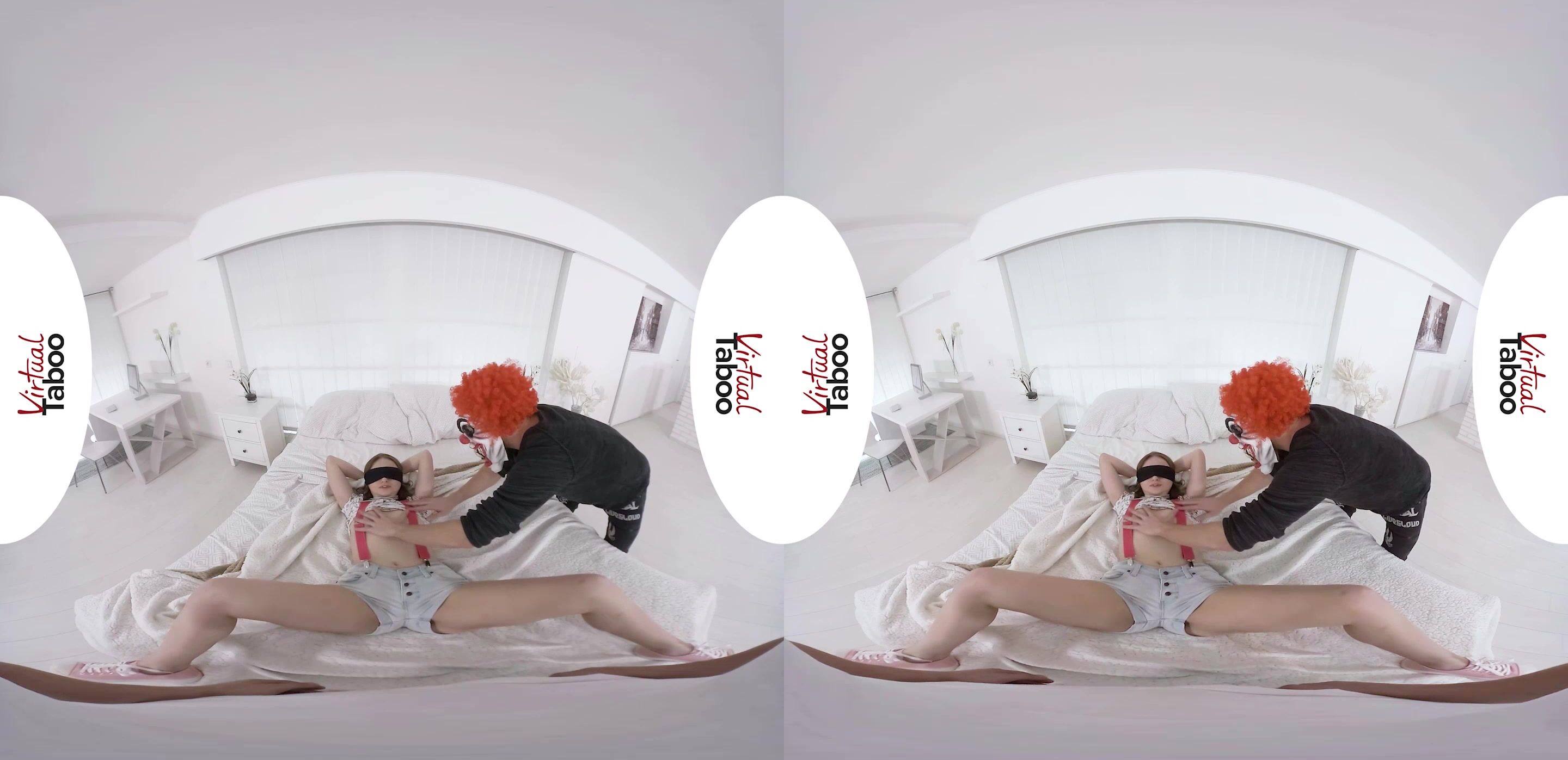 On a rather boring and uneventful day, the stepbrother and the boyfriend of a petite looker named Lady Bug decided to pull a prank on her. So, the bro took a clown mask and hid while waiting for the signal as the boyfriend went on to seduce this little darling. Putting a blindfold over her eyes, the prankster of her lover invited her stepbro in who in turn started touching her tight body. Thinking that it was her boyfriend, Lady Bug started touching her stepbrother’s cock. At this moment, the boyfriend told her to take the blindfold off, and, seeing that mask scared her. As the bro took off the mask, the expression of fear on her face turned into shock. But, it was too late for our adorable cutie to stop, so she started fooling around with both her stepbro and her boyfriend before eventually taking turns blowing on their throbbing meat poles. Of course, as they were all naked, Lady Bug got one of the guys to pound her tight pussy from behind as she sucked on the other one’s thick shaft. Soon enough she was riding on top of her boyfriend’s hard boner while blowing her hung brother before doing the same in the reverse cowgirl position. Then it was stepbro’s turn to nail her wet pussy from behind before the boyfriend pumped her juicy snatch in the missionary position. When the guys could not keep the sperm inside of their balls anymore, they had the lovely sister suck them off and have their dicks explode on her pretty face.