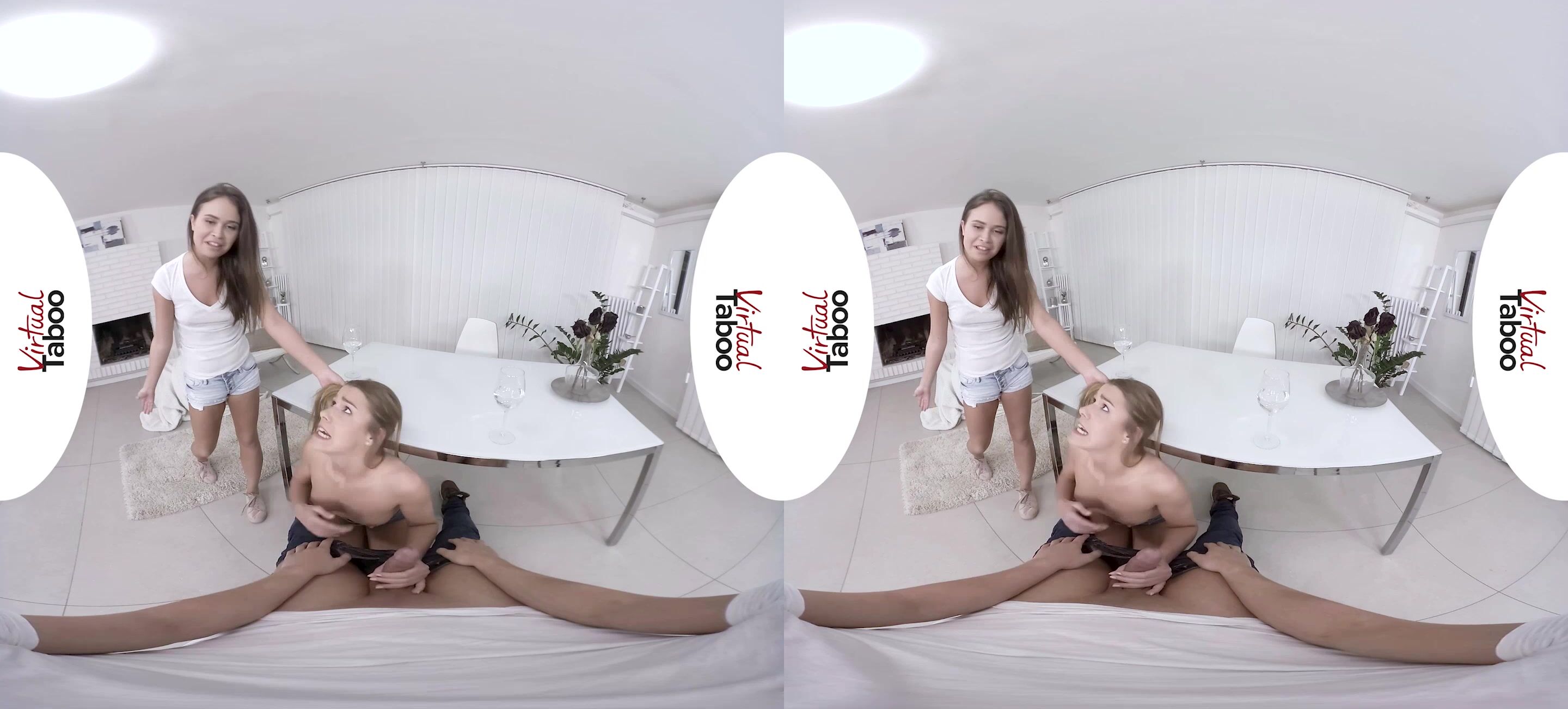 After a night of partying, I came home with my lovely girlfriend and my cute stepsister. While my sis and I decided to have another drink, my girl said that she was tired and went to sleep. We were talking and fooling around when all of a sudden the slim brunette looker of my stepsister started hitting on me and slowly pulling down her shirt to unveil her perky boobs. Before I could get my bearings, my pretty sister was down on her knees sucking on my hard dick. That would be all fine and dandy had my girlfriend not decided to wake up at that moment. Little to say that she was not happy with the situation, but my stepsis managed to convince her that she should join us. And, sure enough, the two of them took turns blowing my boner while kissing and stripping in the process. When they were both completely naked and their hot bodies were out in the open, my bae sat on top of me and had her pussy licked by my naughty stepsibling before actually going on to ride my dick. Of course, we haven’t forgotten about my sis, as the both of us got to lick her tight twat. Soon enough it was time for the girls to switch and my petite stepsister to bounce on top of my thick shaft as she licked my girlfriend’s juicy snatch. The girls switched once more before getting down on their knees and making my rod explode all over their faces.