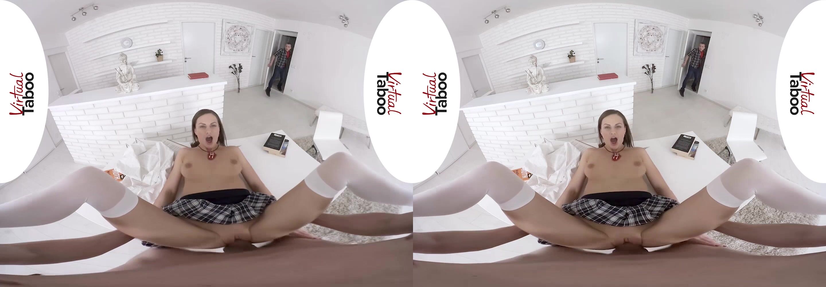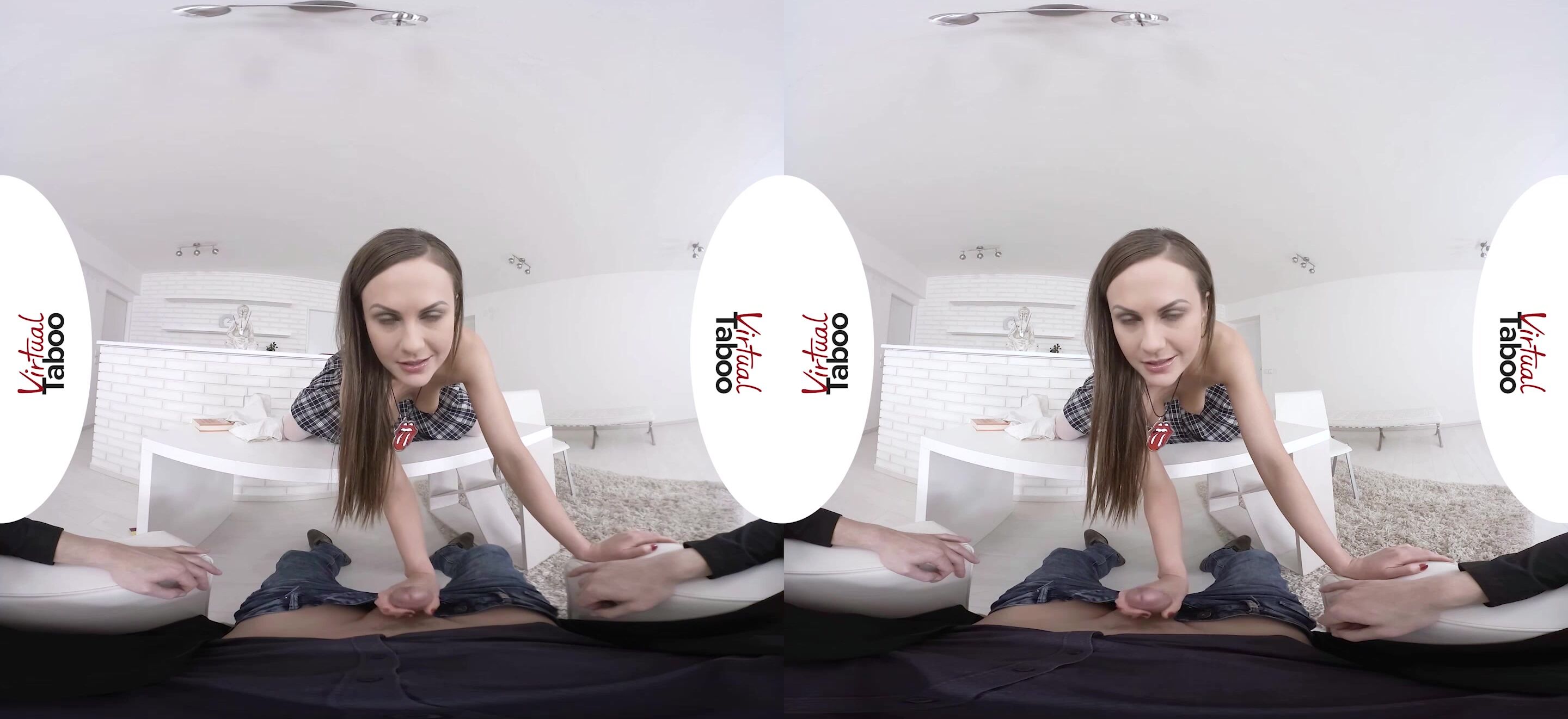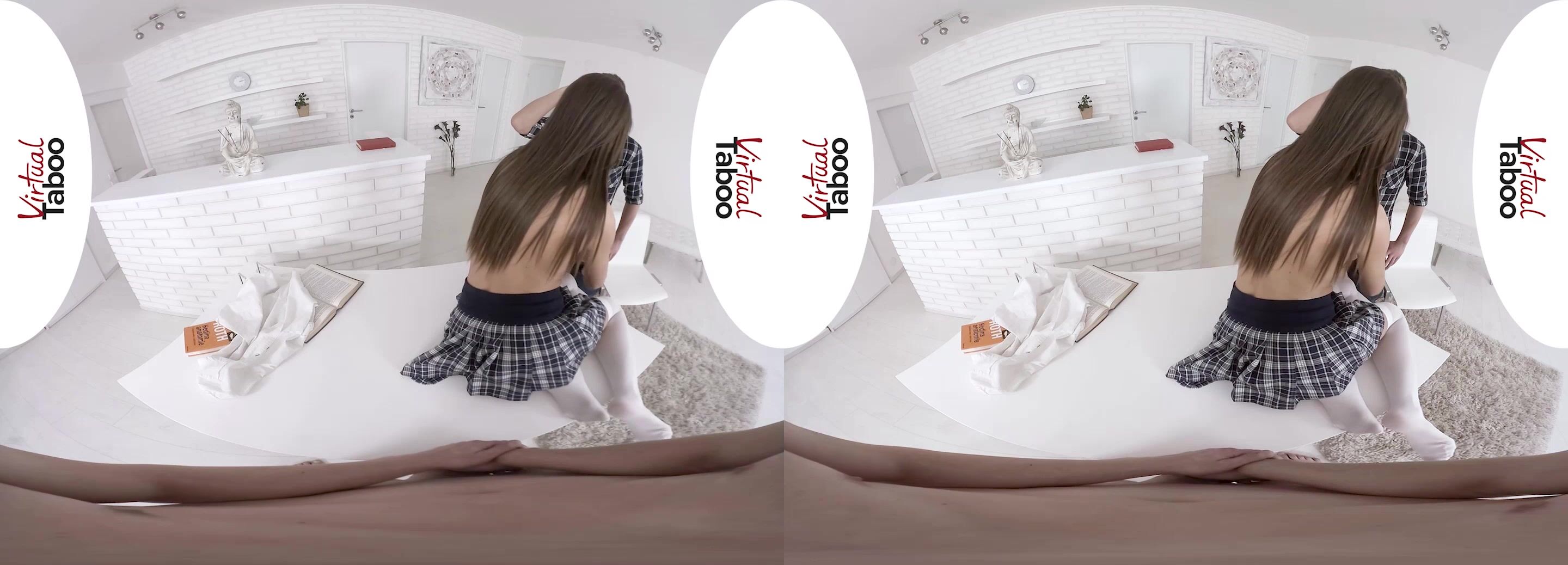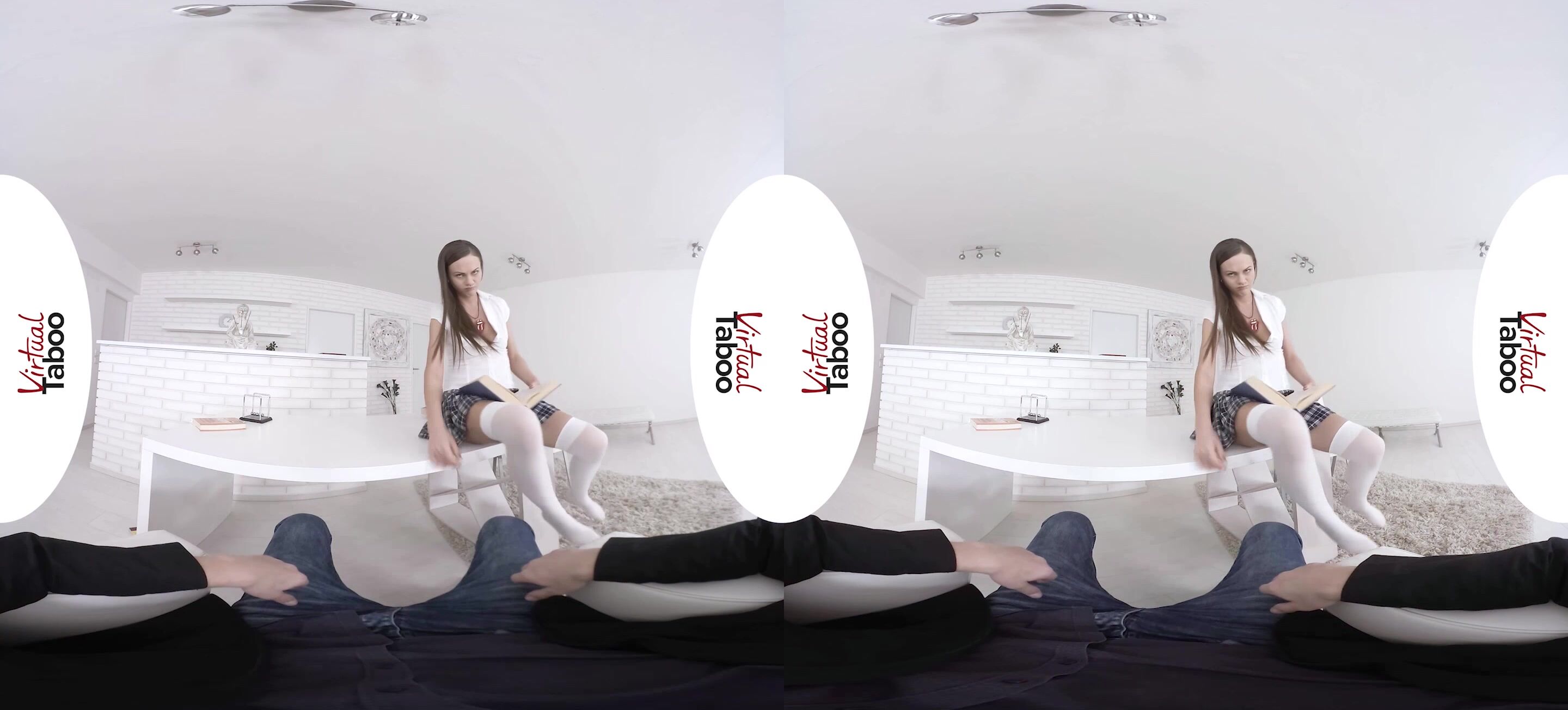 While she was having a private class with her tutor, Tina Kay, a lovely young lassie with a slim physique and perky titties got bored, just like any other teenager would during school. Not knowing what to do with herself, this brunette cutie decided to seduce her teacher by sitting on the desk in front of him, spreading her legs, and unveiling her cleanly shaved muff. Pulling out her tutor’s cock out of his pants, Tina sucked it before letting him to pound her muff on the table in the missionary pose. As these two were bumping uglies, Tina’s hung stepbro came home earlier, entered the room and was shocked at the scene that greeted him. Trying to prevent him from telling their parents about all of this, our foxy Tina grabbed her stepbrother’s hard shaft and started blowing it. Soon enough, the tutor was on the floor having his member ridden on and bro was enjoying getting his schlong sucked on. Then it was her stepbrother’s turn to pound her juicy muff from behind really hard as she serviced the horny teacher’s pulsating boner orally. After she got bored of that too, this insanely hot schoolgirl decided to bounce on the tutor’s fat cock in the reverse cowgirl position as well before letting her brother fuck her in the doggystyle pose once more as she made her teacher spray his hot load inside of her open mouth. Getting up, our incredibly lusty teen Tina let her stepbrother cum inside of her mouth as well.