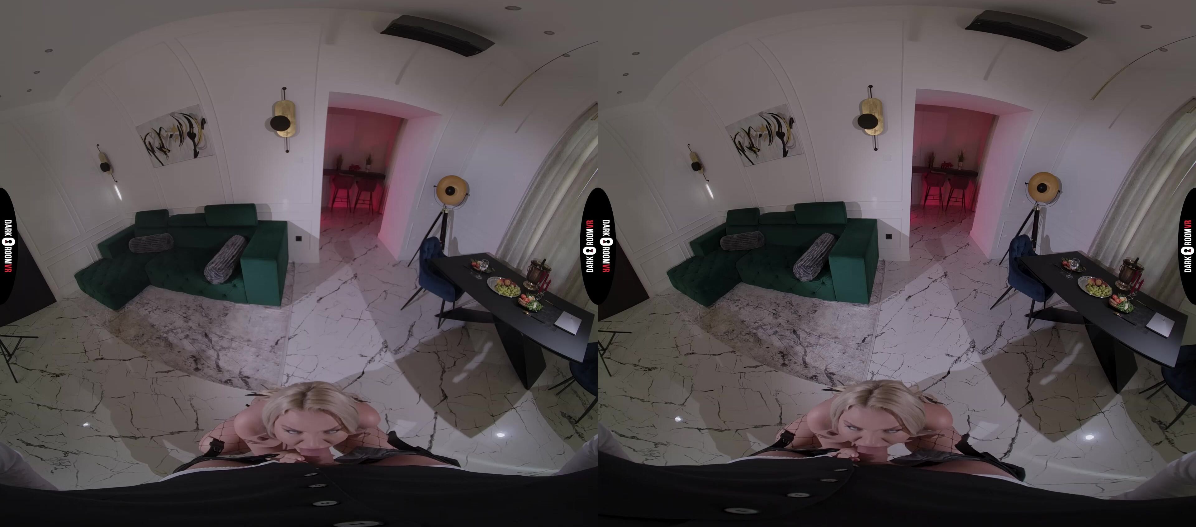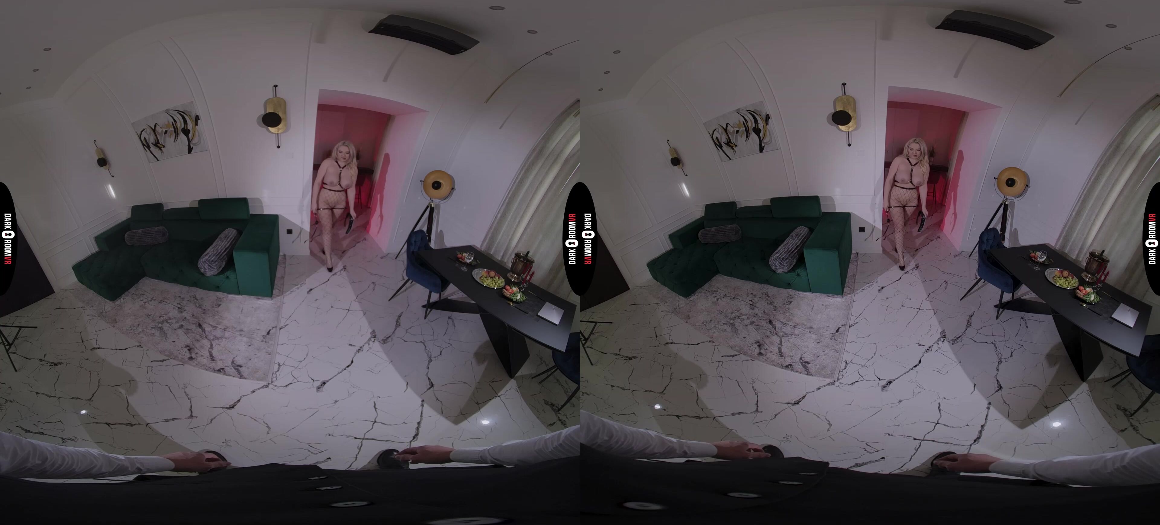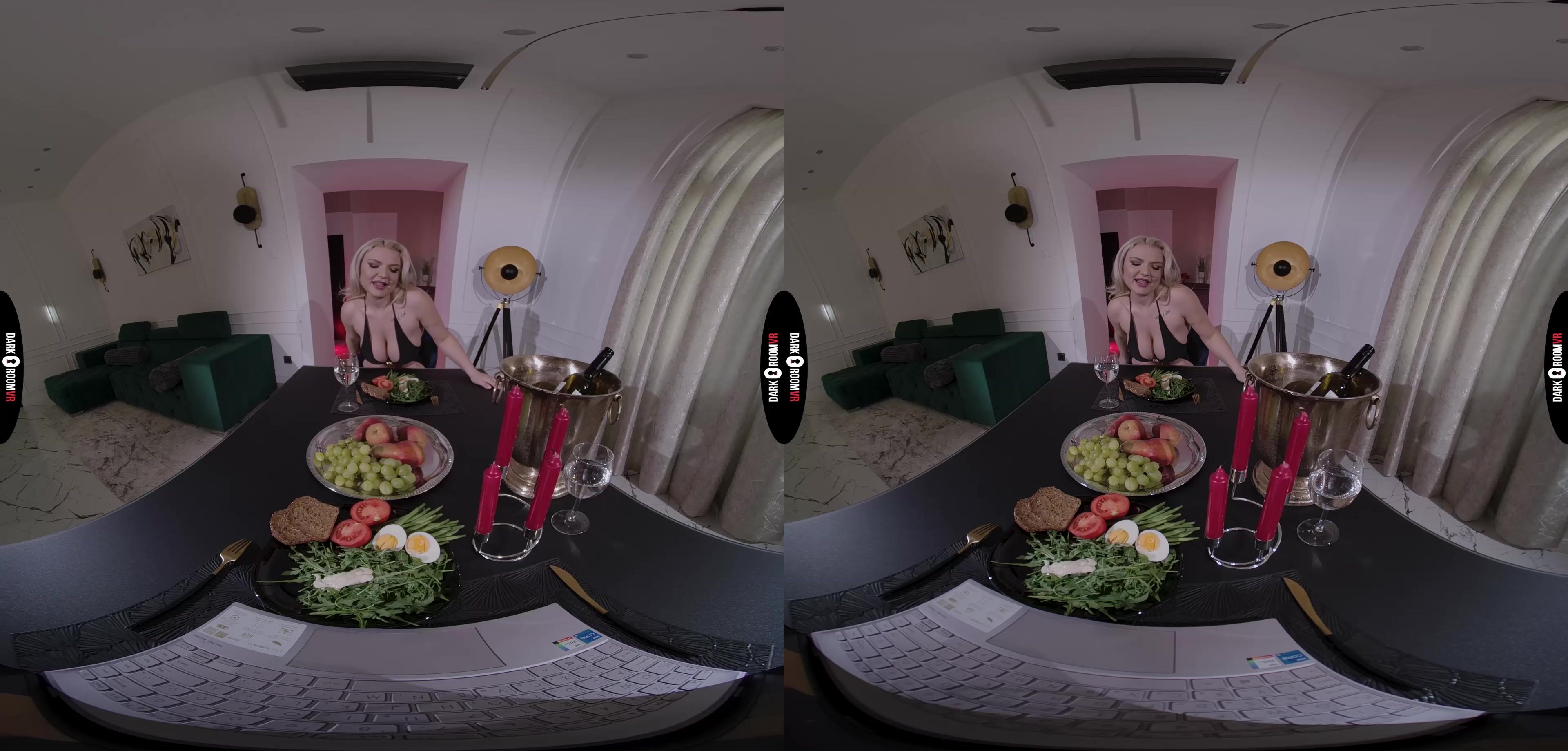 Discover Miss Jackson's daring escape from loneliness on Valentine's Day as she invites a stranger for a night of intense domination. Tied up with a ball gag and collar, she succumbs to his commands, savoring the thrill of submission. On her knees, she eagerly pleasures his cock, her desires unleashed. In this VR journey, he takes control, fucking her hard at the dinner table, claiming both her pussy and ass with relentless thrusts. Her submission reaches its peak as he finishes by painting her face with his load, a final mark of his dominance. Will her husband notice the signs of this unforgettable encounter?