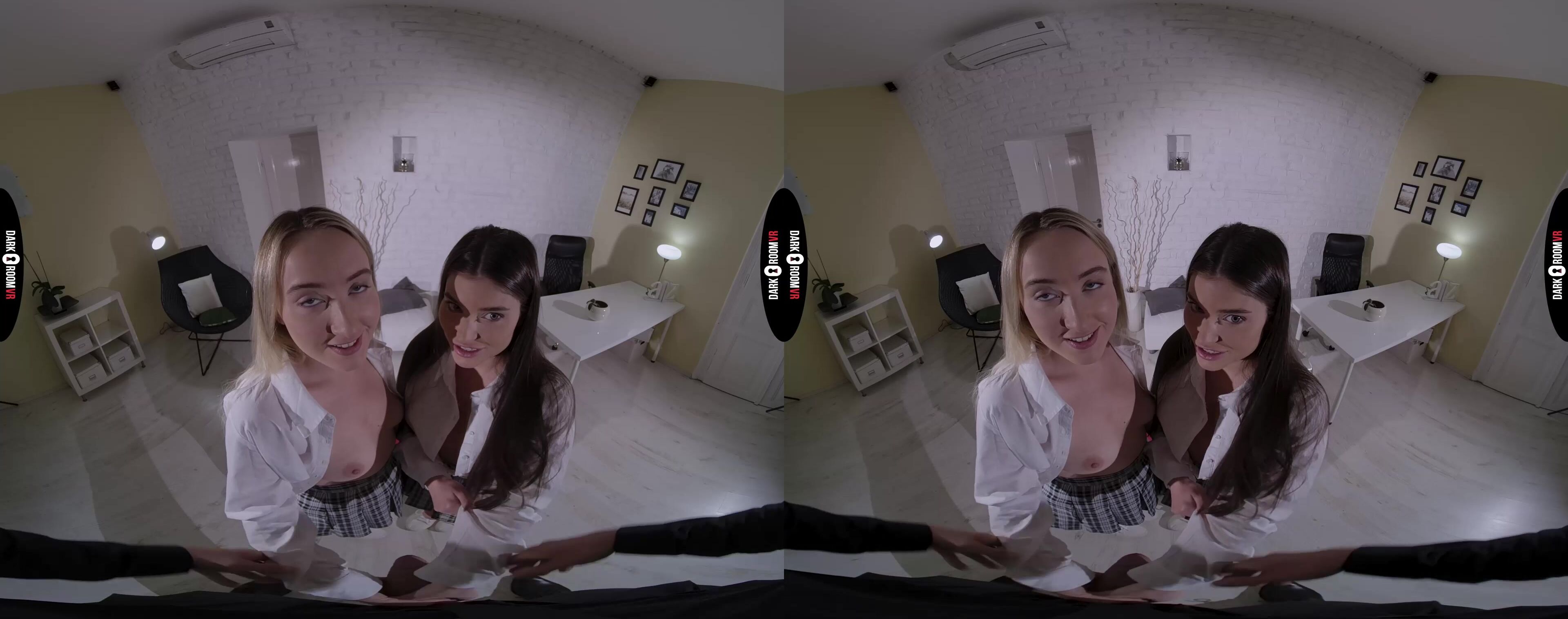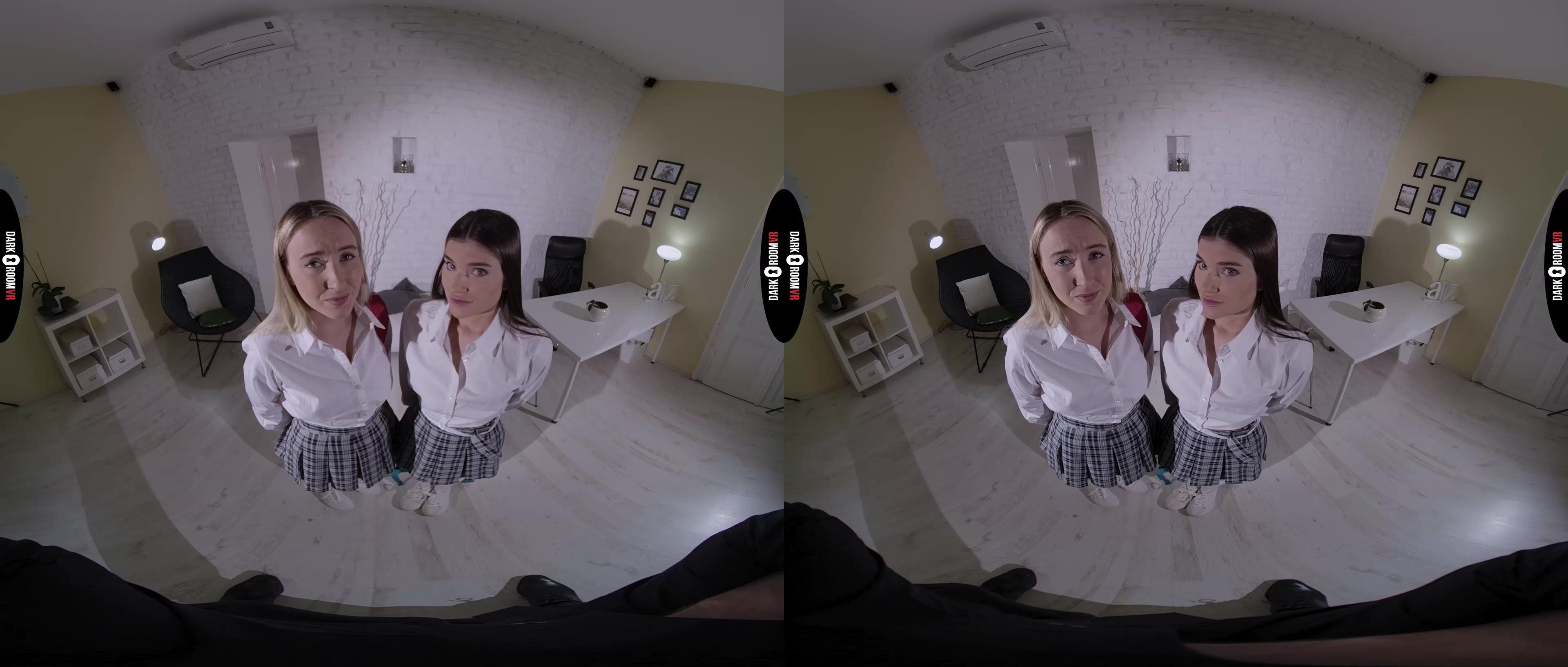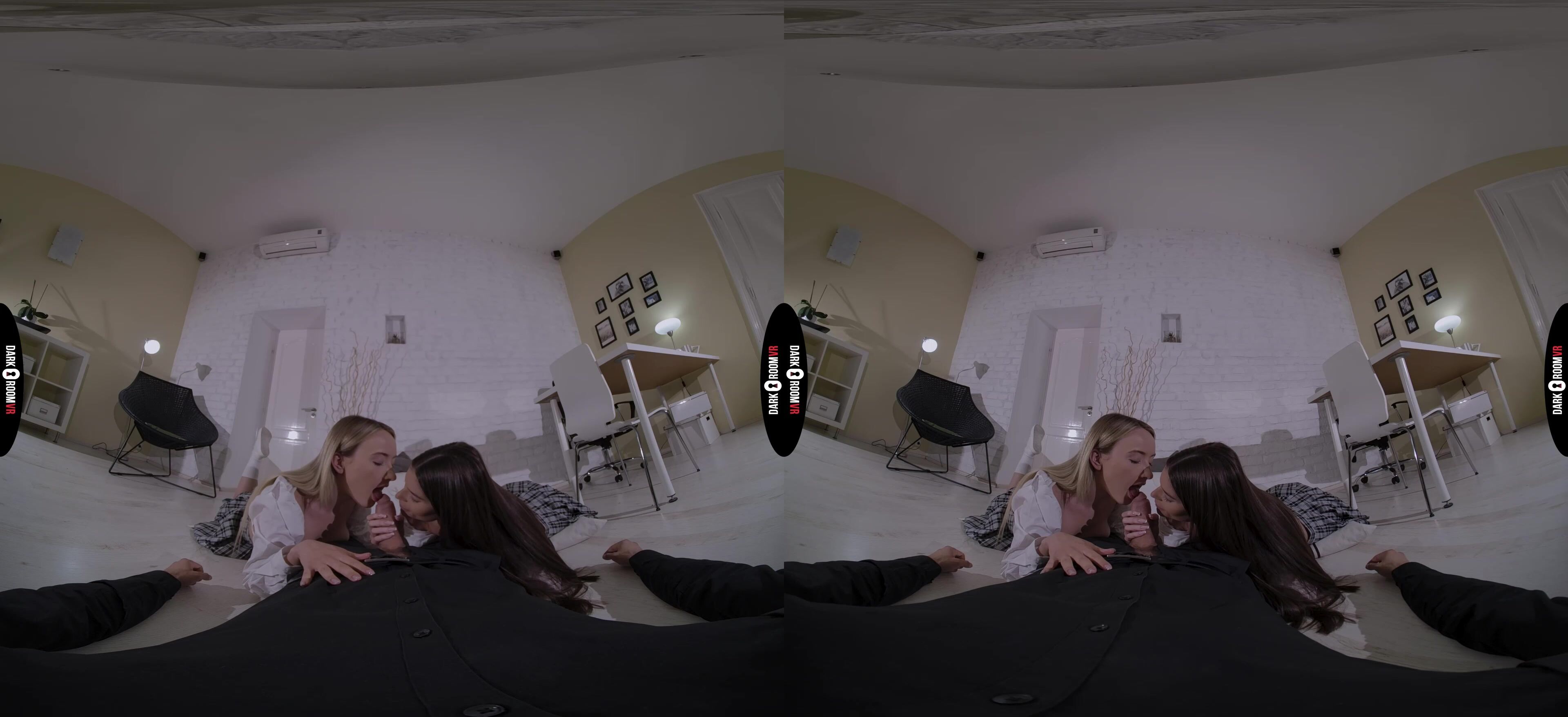 Ann Joy and Stefany Kyler face campus chaos as their intimate photos go viral on a VR porn site. Their professor finds the pictures and notices a promising opportunity. In exchange for removing the photos, he demands they pleasure him together....