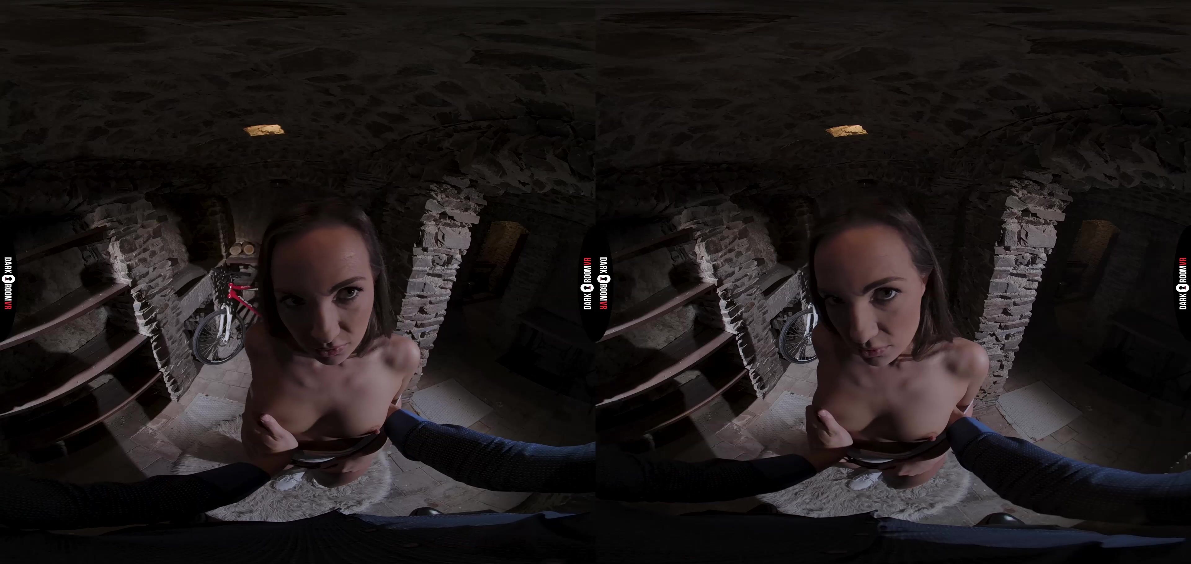 Kristy Black VR, while biking, discovers a mysterious gothic mansion. Intrigued, she investigates and encounters the lurking owner. Lying about her bike's wheel, she catches him eyeing her, and he suggests an alternative help. Kristy bends over...