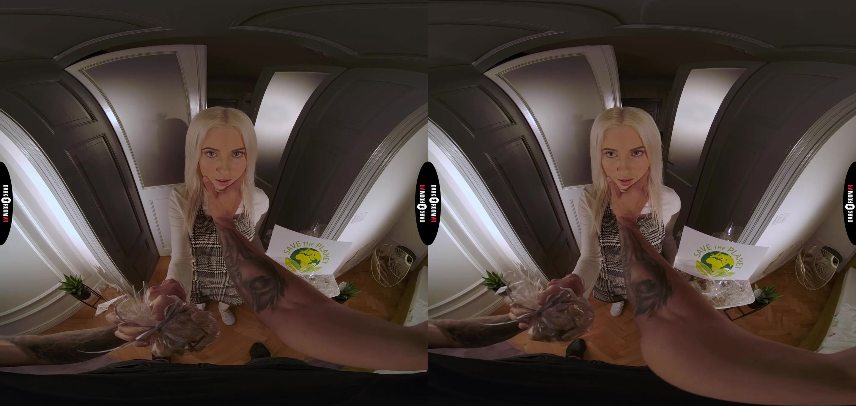 Lilly Bella, a college student with a crush on her professor, faces unexpected desire while selling cookies for an environmental fundraiser. Invited into a mysterious man's dark apartment, she finds herself entangled in a web of dominance and submission. With a commanding presence, he explores her innermost desires, spanking her and leading her to the bedroom. His powerful touch and big cock leave her begging for more, as he roughly flips her, paws at her tender tits, and fills her tight cunt. Lilly's submission reaches new heights, losing control under his icy stare, as he takes her to the brink of ecstasy, leaving her face covered in his load. A voyeuristic journey through VR as she succumbs to raw, primal pleasure....