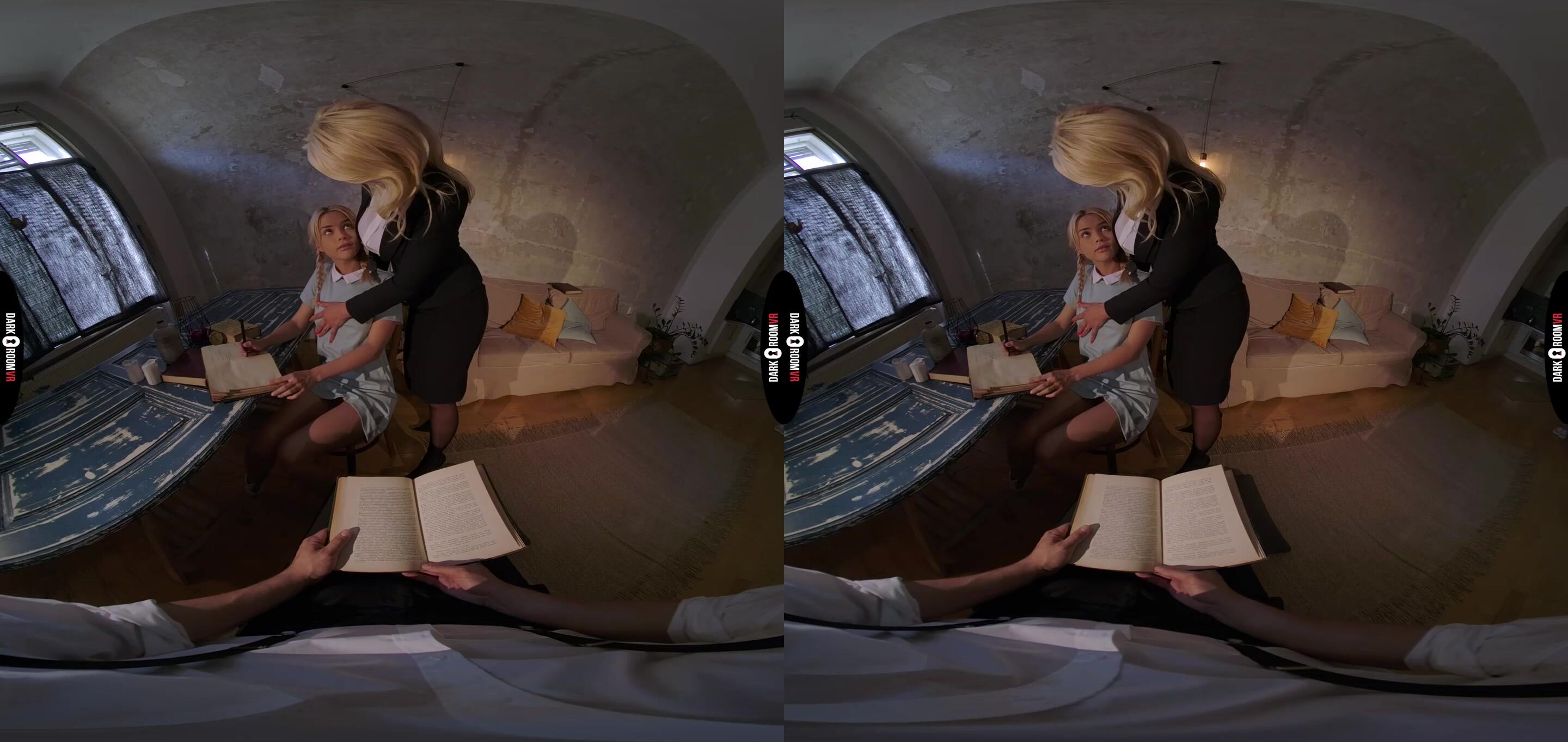 Experience a VR fantasy where stern professor Tiffany Rousso transforms a study session into an unforgettable lesson. Lika Star and her male classmate's curiosity lead to an explosion of tension. Tiffany takes control, guiding Lika's first...