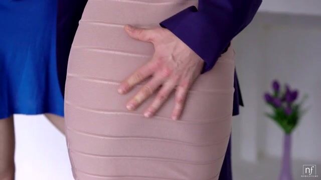Tina Kay and Belle Claire are dressed to impress! They apply lip gloss to each other, and seal their makeup with a kiss. When Max Dior joins them in the room, the girls beckon him over so they can admire him and then unwrap him like their own personal present.Max gives each girl a kiss before letting them lead him to the bed. Belle and Tina start peeling off their dresses as they take turns stroking Max's dick and pause to exchange plenty of kisses. Eventually the girls are both naked, which means they can give Max their full attention. The view of a double blowjob delivered by two certified hotties is almost more than Max can bear!While Max remains prone on the bed, the girls decide who gets to enjoy his fuck stick first. Belle is the winner, and as she mounts Max's stiffie Tina takes his mouth. Since they are facing each other, the girls can continue to kiss as they each go for a horny ride.Tina doesn't have to go without a cock buried in her greedy twat for too long. She finds herself on her hands and knees with her tongue lapping at Belle's smooth pussy and max fucking her from behind. He sinks his hardon deep with each stroke, eventually prompting Tina to muffle her cries of delight by pressing her mouth to Belle's pussy.Turning over onto her back so Belle can ride her face while Max continues to bang her, Tina now enjoys the view of both her lovers kissing above her. Belle keeps her pussy pressed to Tina's mouth as she leans forward and wraps her soft lips around Max's hardon to suck him off. Then she rearranges Tina's head into her lap so Tina can give her full attention to her boyfriend as he brings her over the edge.As Tina enjoys the aftershocks of her climax, Max spoons behind Belle and slides into her from behind. Tina is happy to participate by caressing each of her lovers, licking Max's balls and fondling Belle's clit to help them each reach the edge of their control. As Belle cries her orgasm, Max pulls out and lets Tina aim his fuck stick at Belle's ass as he covers her in cum. Tina licks Max's stiffie clean, then moves on to Belle's bottom as she plays with Max's jizz.