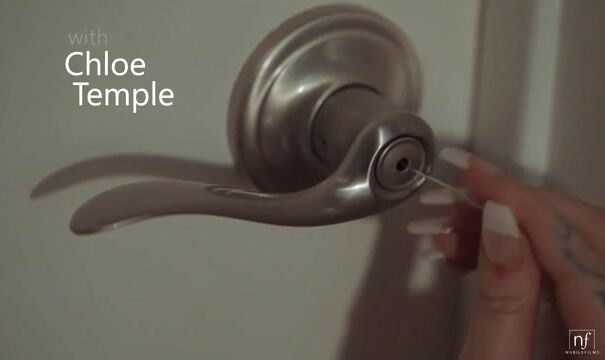 Spy chick Chloe Temple is on a top secret mission that requires her to break into a locked room and go through a hidden briefcase. She's just in the middle of her task when Jake Adams, another spy from a rival agency comes upon her. Chloe and Jake exchange a few words, with Jake affirming that he's going to have to take Chloe down. The blonde uses her last resort secret weapon: Seduction.She waits until just the right moment to turn around in Jake's arms and plant a kiss on his lips. When Jake puts Chloe against the wall to allegedly frisk her for weapons, she turns the situation sexual. Jake is, after all, only a red-blooded man so he gives in to the temptation to let his hands roam Chloe's delectable body. As he hikes her dress up and feels how wet she is, he takes her bait and slides her thong to the side so he can push his hardon all the way inside.Chloe is totally into their standing sex, especially when Jake grabs her hair and uses it to pull her head backwards. He keeps on playing into her hands as he relieves her of her dress and himself of his clothes while they continue to fuck. They relocate to the bed, where Chloe puts her hot little mouth to work sucking Jake's big stiffie deep into her throat.Laying on her back, Chloe spreads her thighs to welcome Jake back inside. She lifts her leg to improve the angle of penetration, then lets Jake maintain intimate eye contact as he fucks her slowly and surely. That newfound trust leads Jake to let Chloe be on top. She positions him on the bed, then uses straps to secure him in place.Although Chloe could take the briefcase right then and there, she's not a cruel girl. She climbs onto Jake's fuck stick and rides him in her greedy twat, giving him a reverse cowgirl treat. Then she finishes him off with a handie that lets her direct Jake's cumshot into her mouth. After she licks Jake clean, Chloe makes sure his restraints remain tight and then takes off with the briefcase.